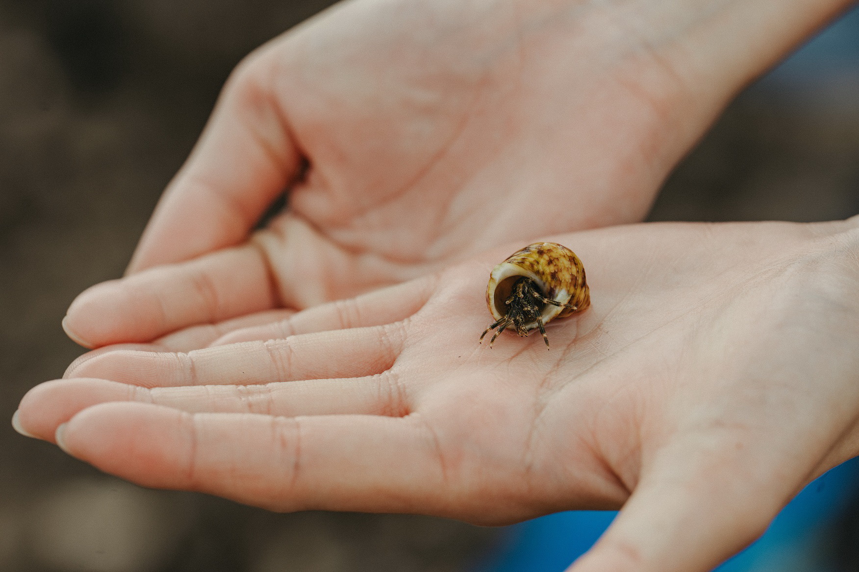 由專業解說員陪同,近距離觀察寄居蟹、螺貝類、海參、薯鰻等生物,探索牠們如何在潮起潮落間生存、覓食與保護自己。