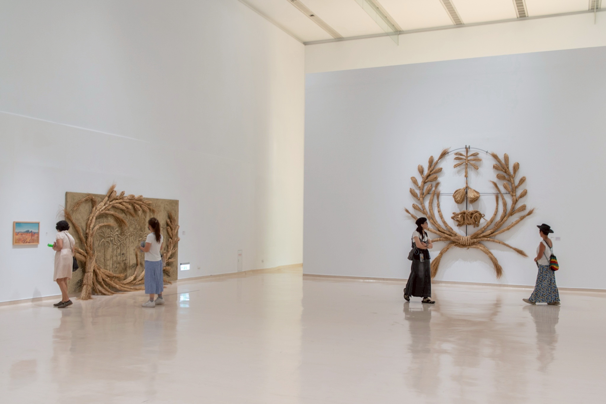 ( 本展復刻2件〈生產帝國〉系列裝置作品,由藝術家張新丕與屏東居民們以稻草合力編織而成,呈現對地方勞動結構的想像實踐。攝影:林宏龍)