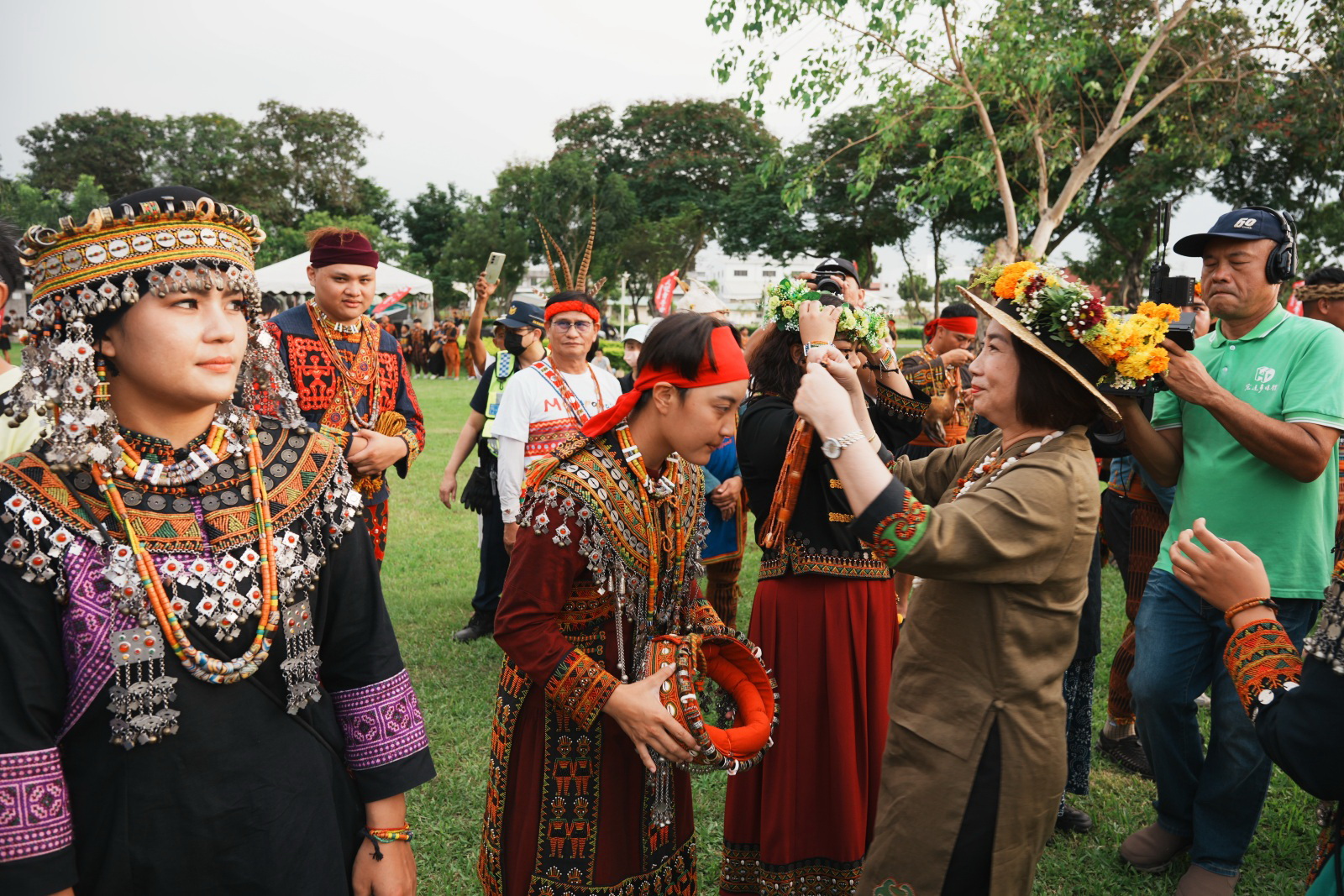 原民會主委曾智勇及立委伍麗華,共同參與象徵團結與共享精神的「千人圍舞」。