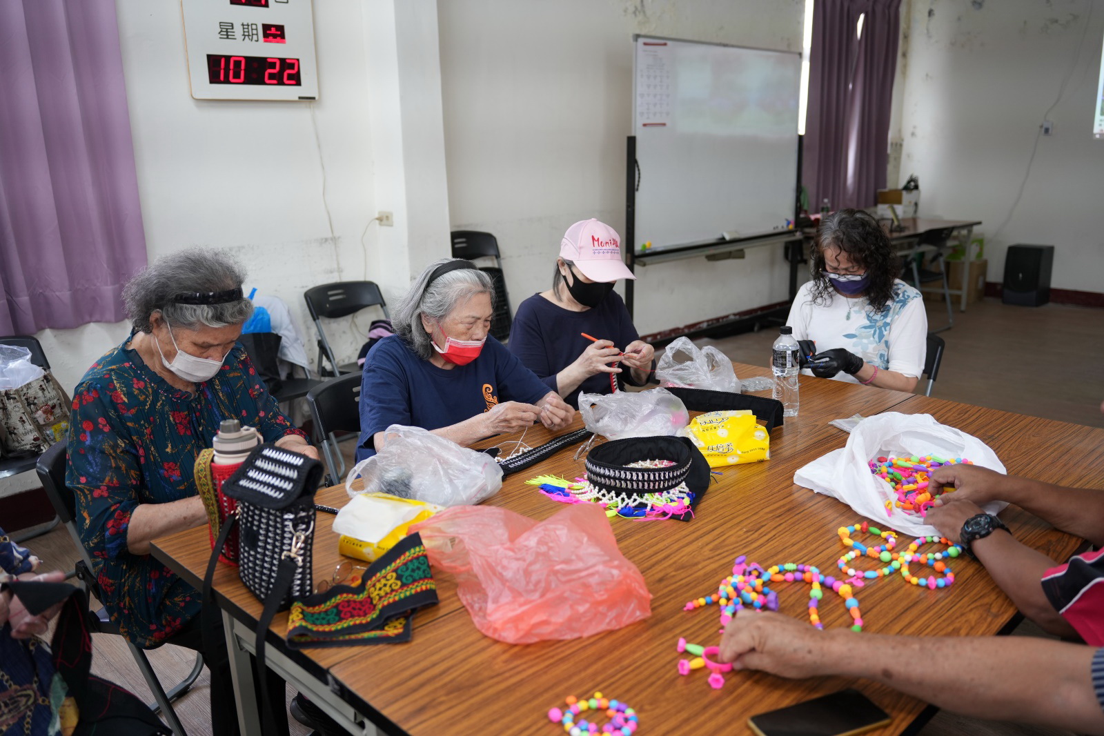 來義鄉「南和文健站」則以文化照顧為核心,近日更帶領長者前往日本愛媛藝術節,展出月桃蓆編織工藝。