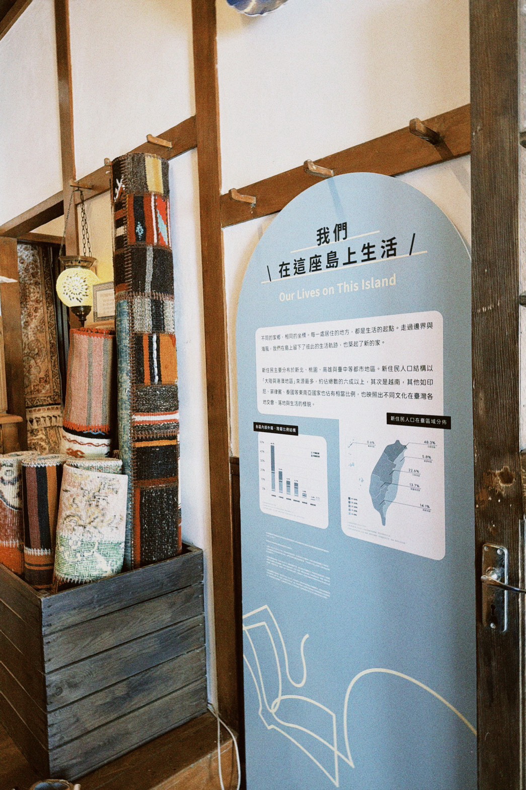 展出內容依據內政部《112年新住民生活需求調查報告》及屏東縣政府《113年新住民照顧服務措施辦理情形彙整表》。