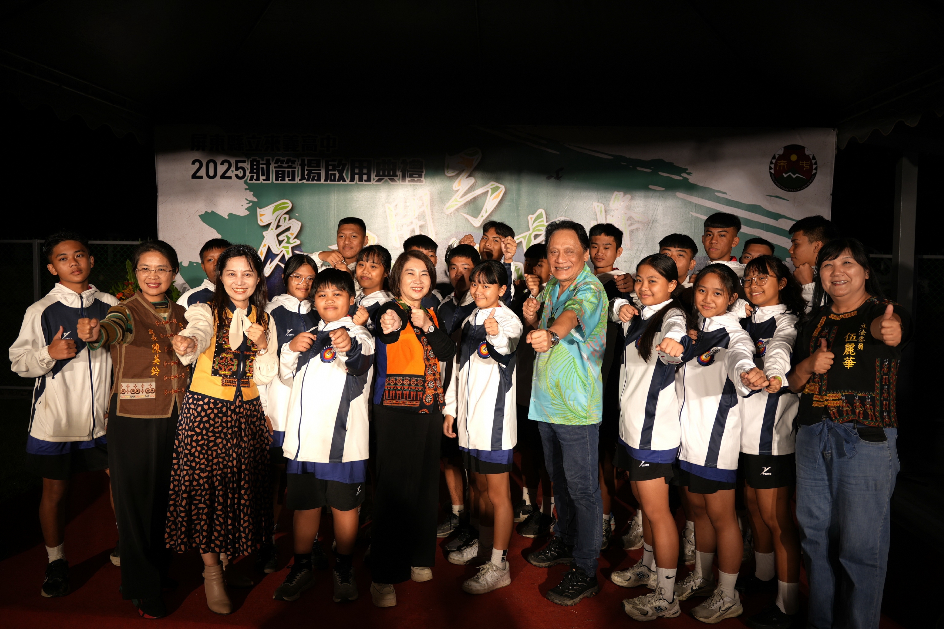 來義高中獲原民會挹注988萬4,870元興建射箭場,周縣長、原民會主委曾智勇、原住民立委伍麗華等人出席剪綵。