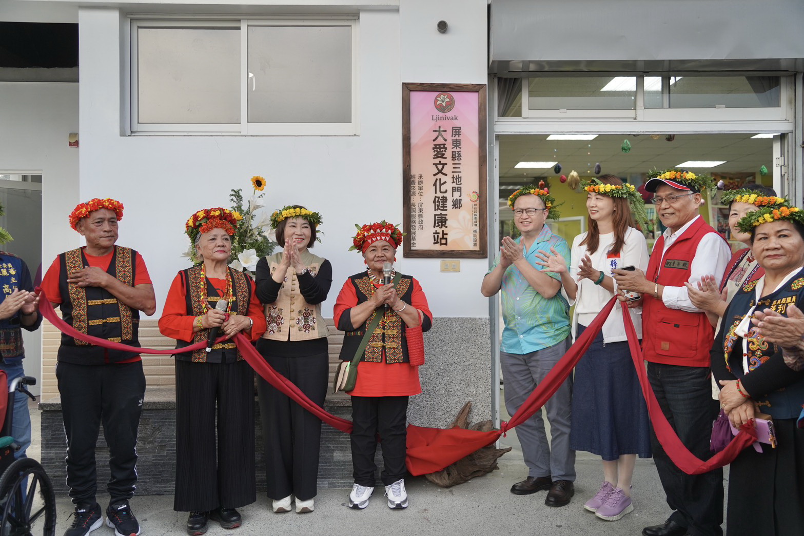 為讓原住民長者能就近獲得更穩定的照顧,屏東縣政府(5)日在三地門鄉長治百合部落舉行「大愛文化健康站」揭牌儀式。