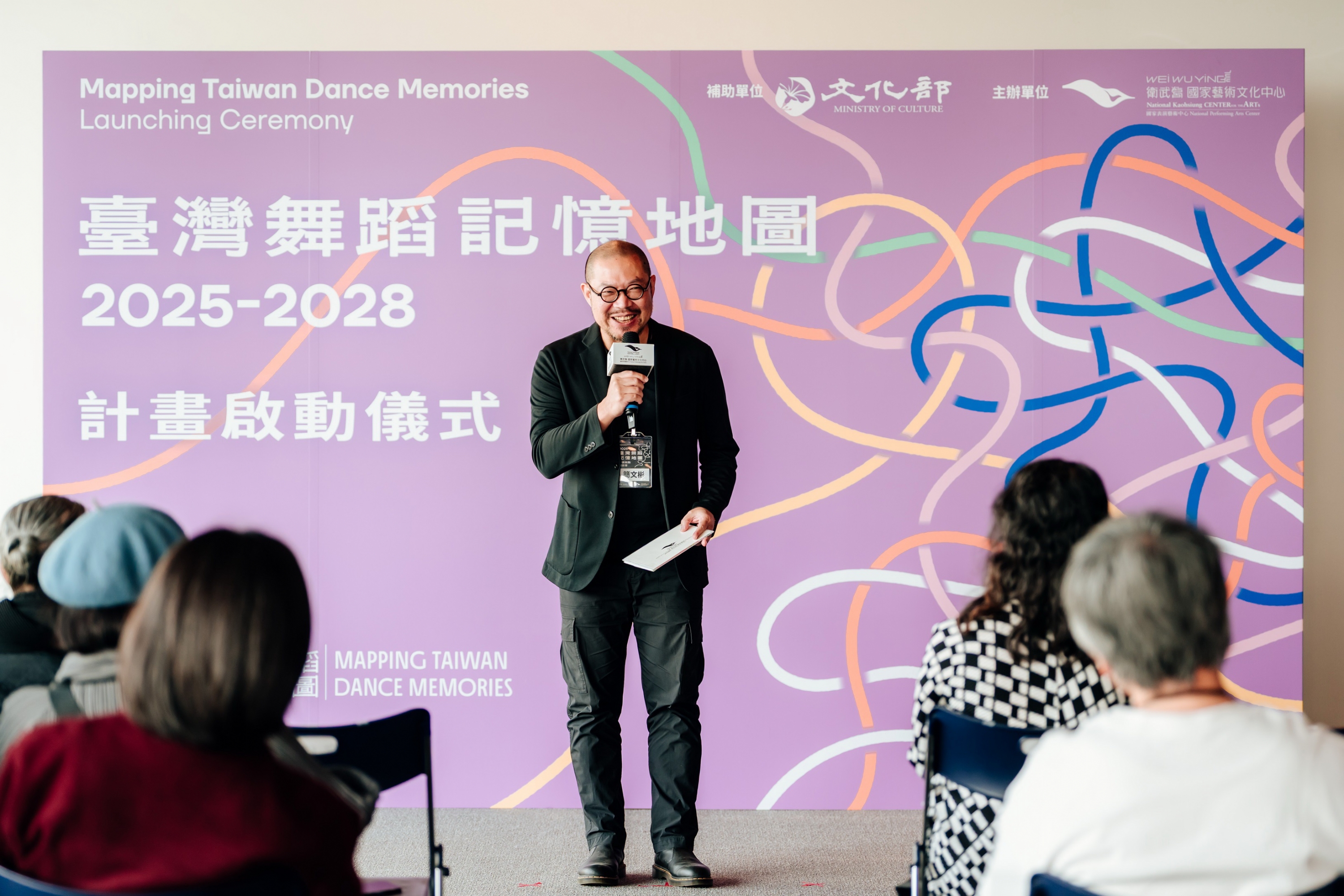 ( 衛武營藝術總監簡文彬於「臺灣舞蹈記憶地圖」計畫啟動典禮致詞。攝影 陳建豪,衛武營國家藝術文化中心提供 )