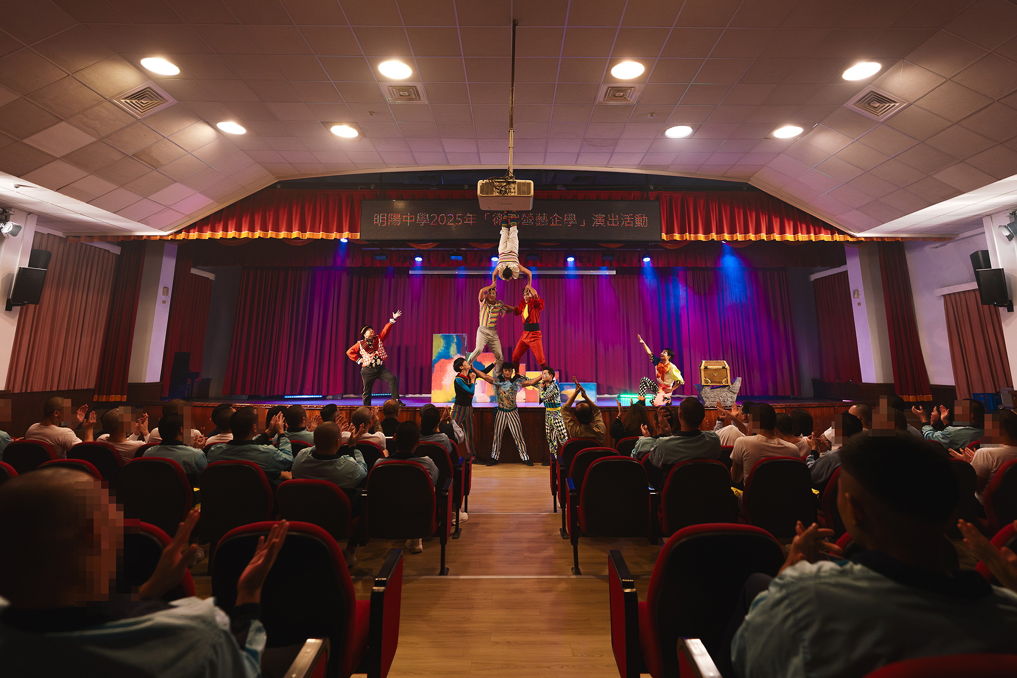 (【衛武營藝企學】首度走出場館跨越高牆。FOCASA馬戲團《潘朵拉的盒子》為明陽中學注入希望與歡笑之1。圖/衛武營國家藝術文化中心提供。)