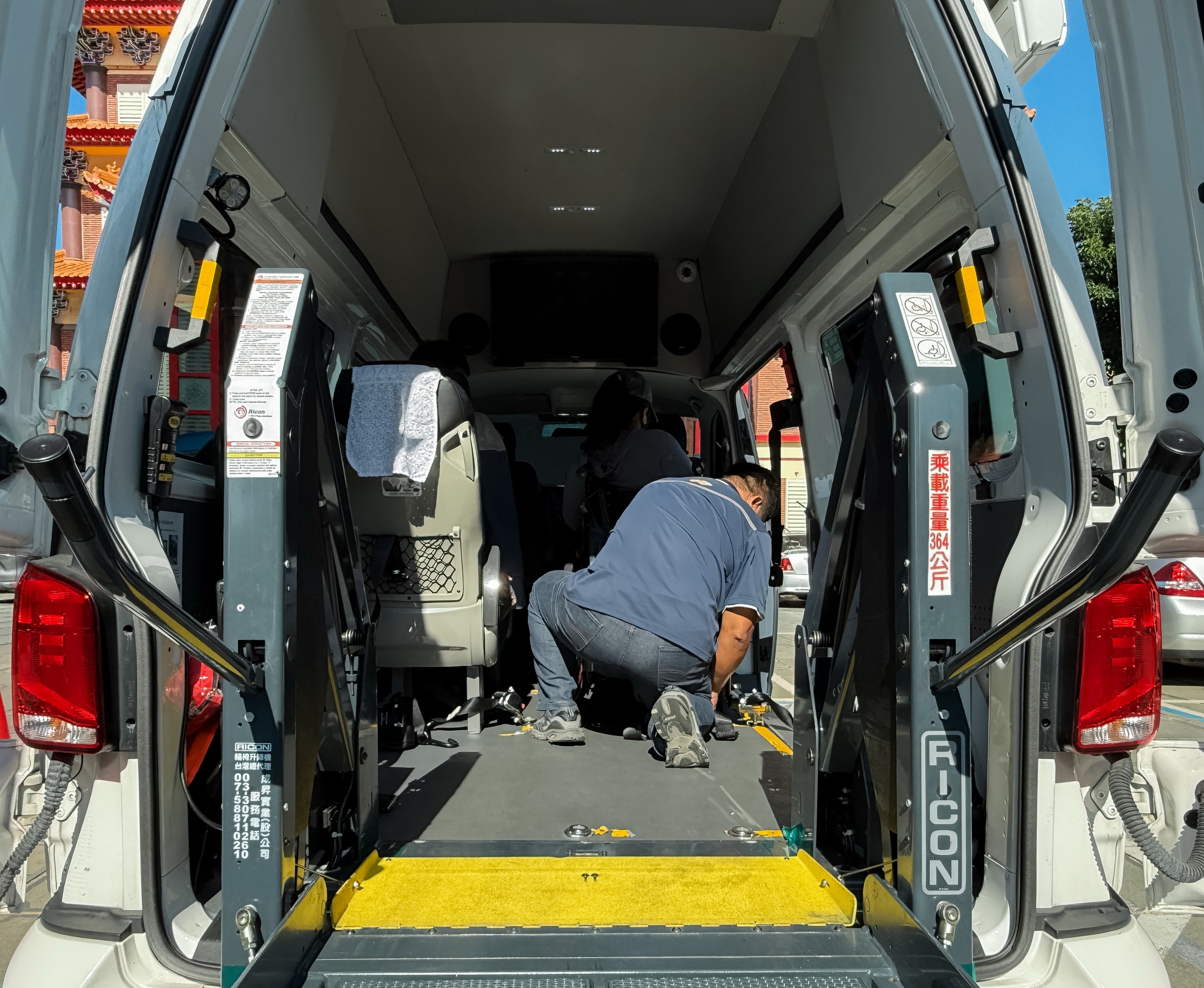 降低交通與照顧負擔,而且服務駕駛會依身障旅客需求規畫路線,從家門口接送,協助旅客上下車、固定安全帶。