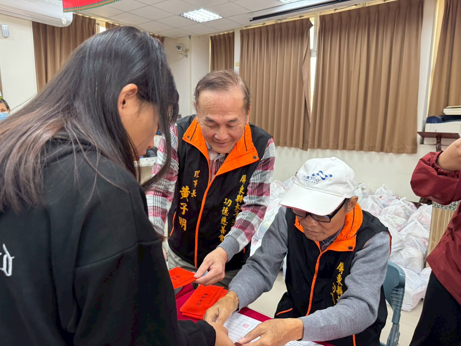 霧臺鄉與新園鄉分別由屏東縣太子濟世功德慈善會及屏東縣同心聯誼慈善會認助,準備紅包為春節揭開溫馨序幕。