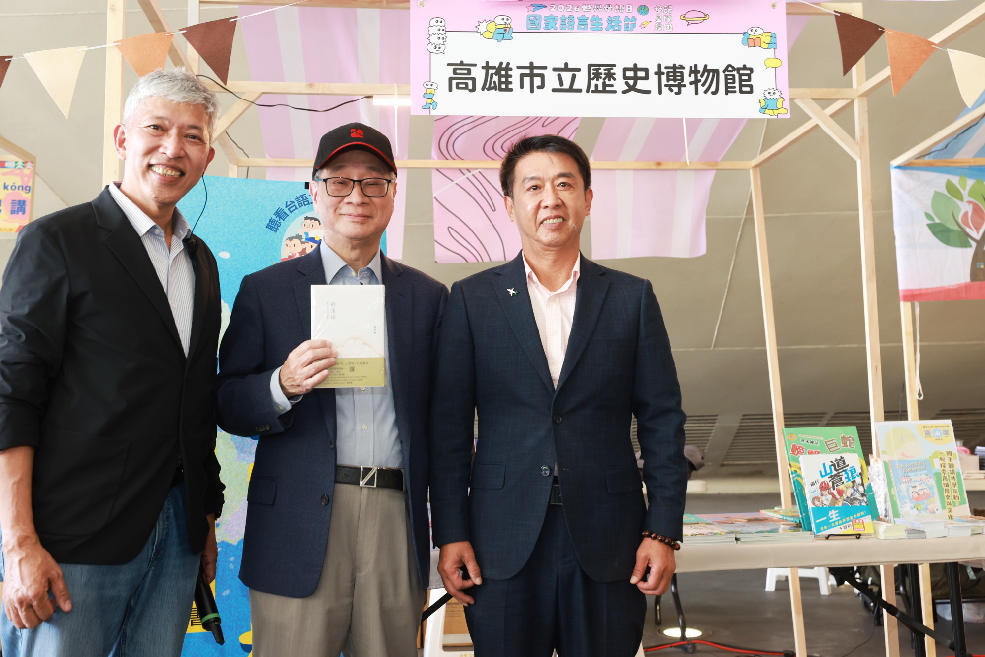 ( 立法委員許智傑(右)出席「國家語言生活節」參觀創新書市攤位與文化部長李遠(中)合影 圖/文化部提供 )