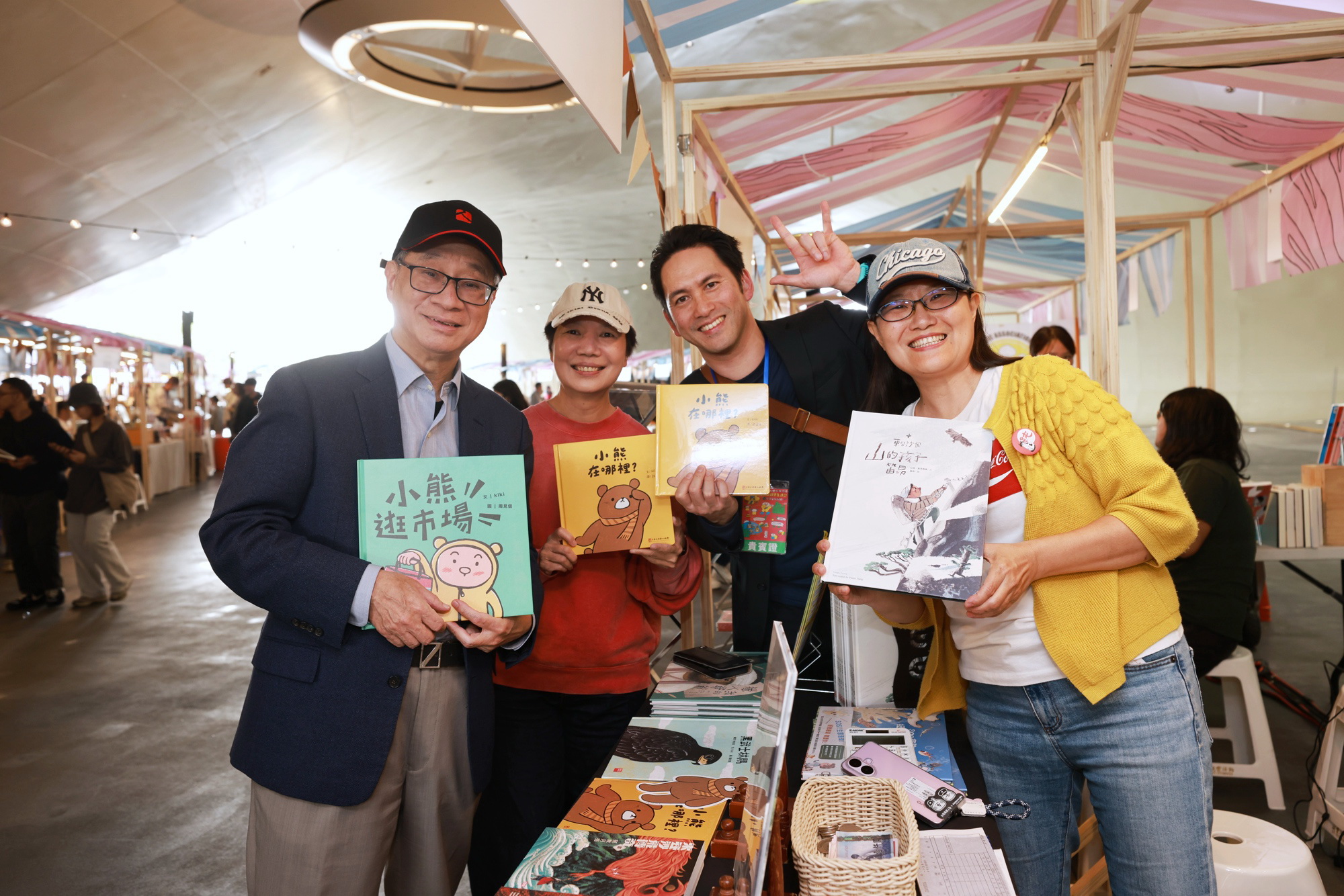 ( 文化部長李遠(左)參觀「2026國家語言生活節」創新書市「四也文化」攤位,販售許多手語繪本 圖/文化部提供 )