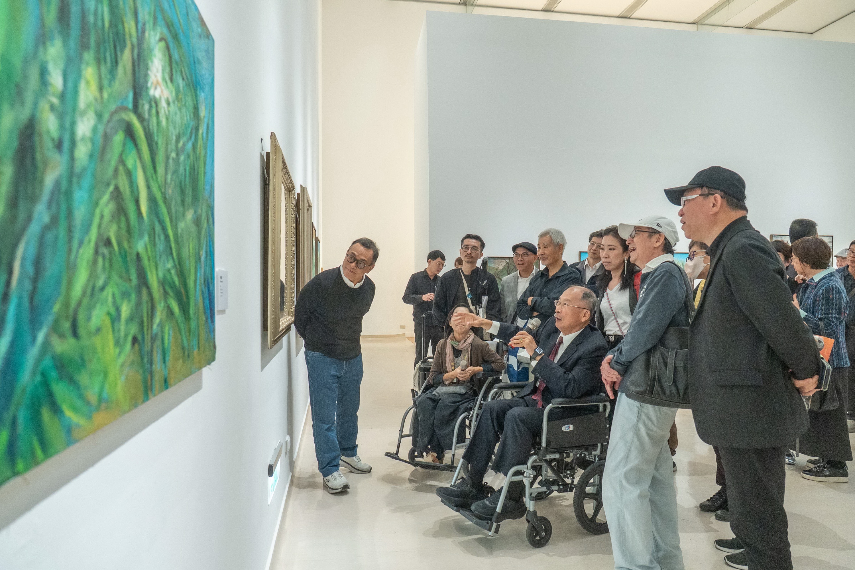 ( 藝術家黃才郎為高美館《彩虹之後—黃才郎個展》開幕與會嘉賓導覽作品 圖/高美館提供 )