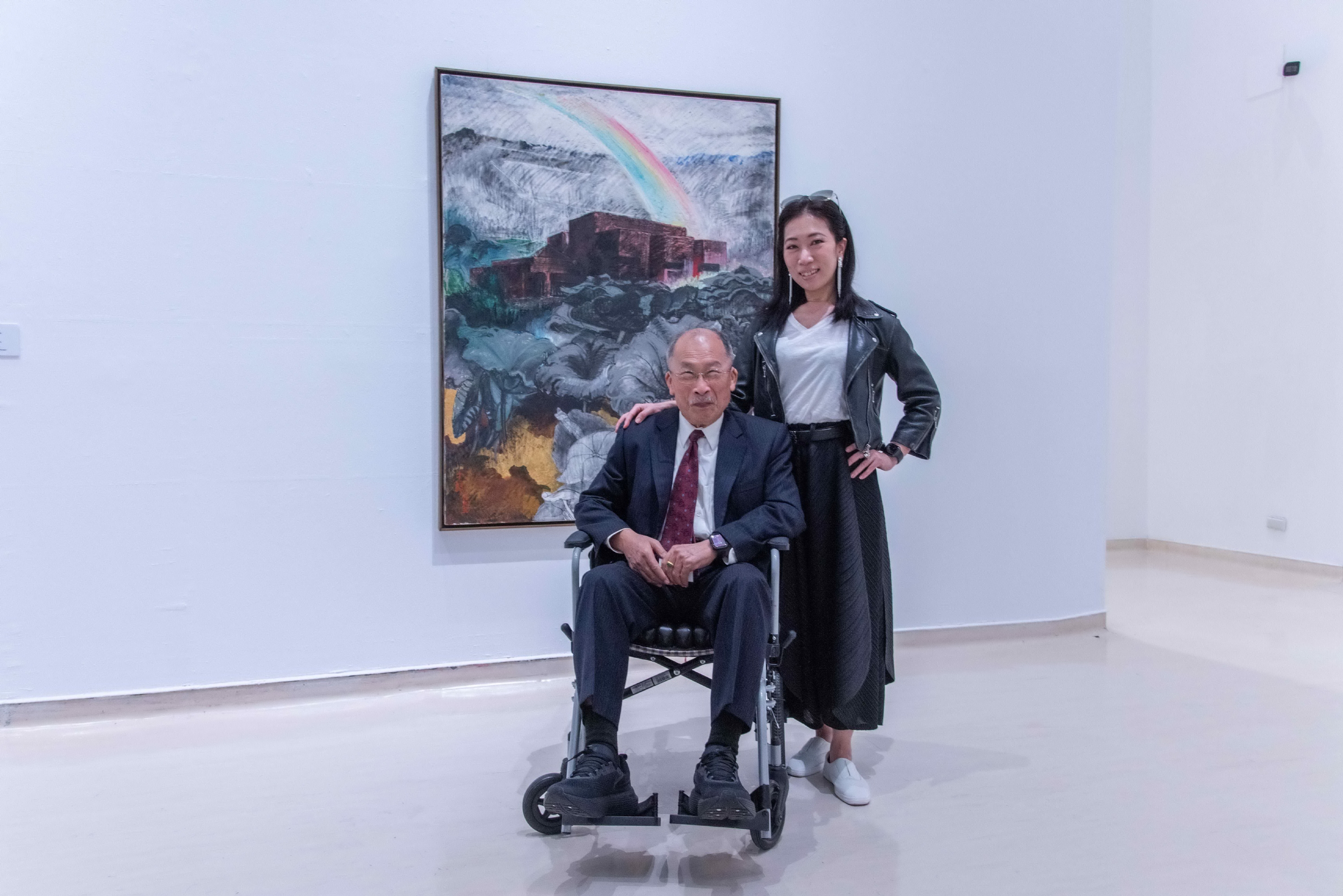 ( 藝術家黃才郎與女兒黃之千於作品〈彩虹—雨後高美館〉前合照 圖/高美館提供 )