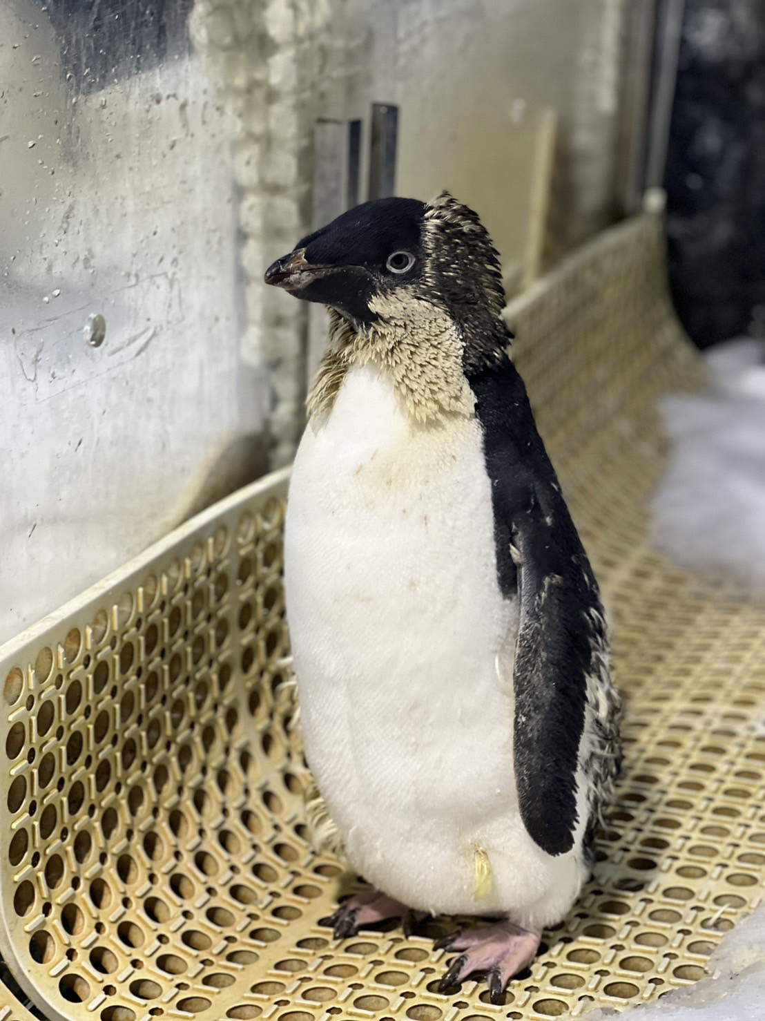 ( 阿德利幼雛換羽中外型十分逗趣 圖/屏東海生館提供 )