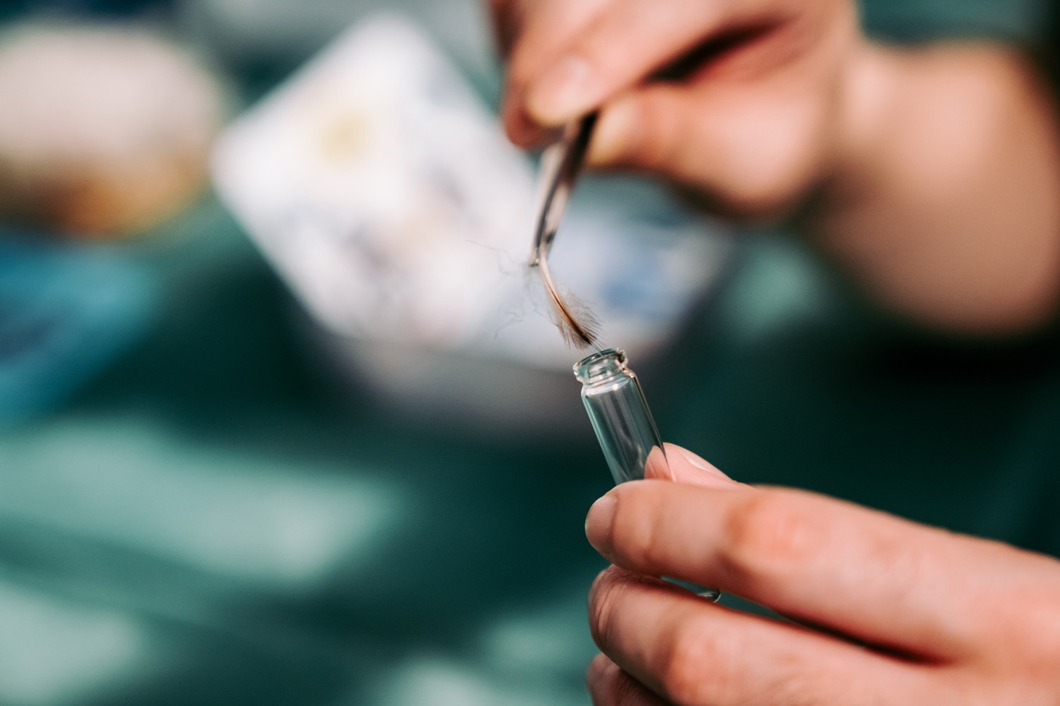(「我與企鵝的0.1毫米」活動最後還能DIY企鵝羽毛瓶,帶走真實的企鵝羽毛留作紀念 圖/屏東海生館提供 )