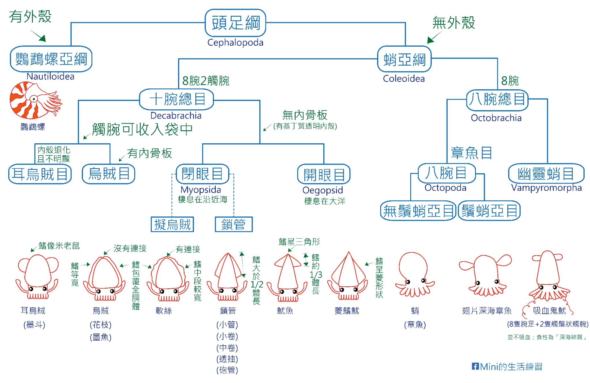 ( 頭足類簡要分類圖 圖/Mini的生活練習提供 )