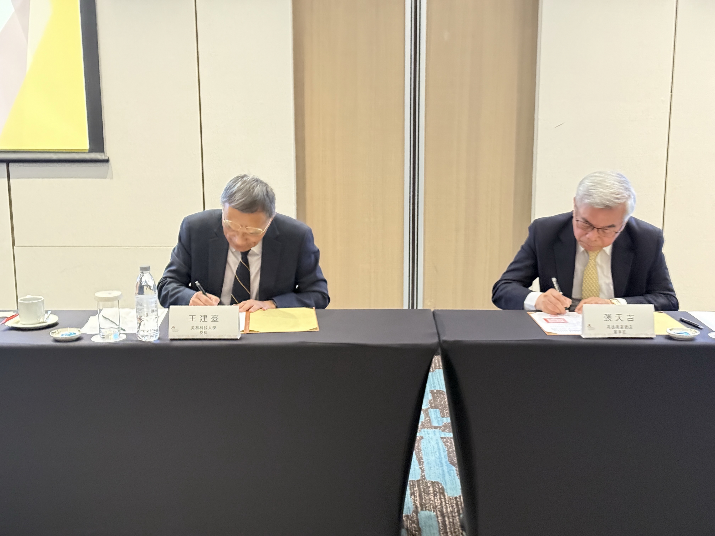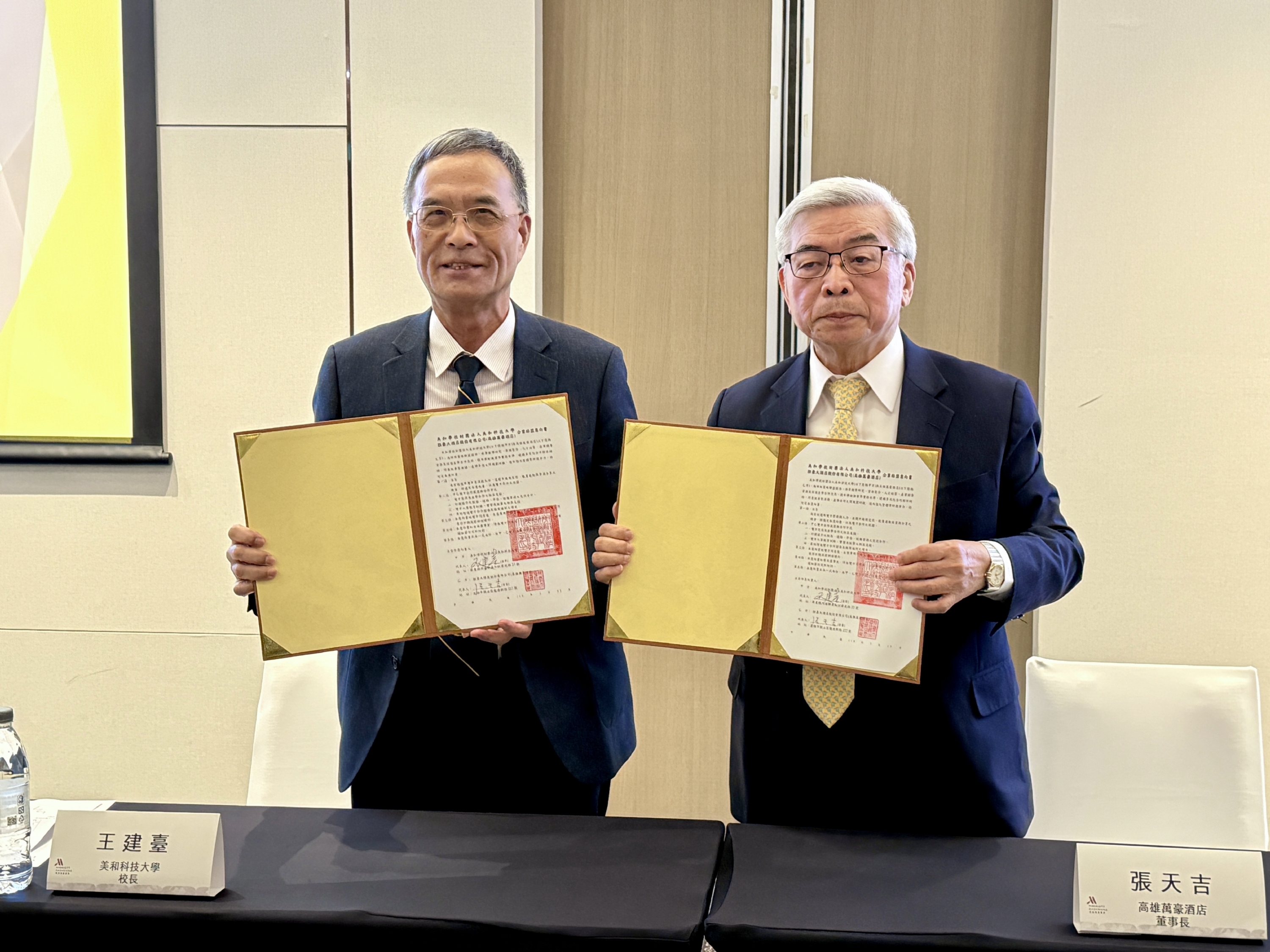 (左起為美和科技大學校長王建臺、高雄萬豪酒店董事長張天吉) 圖/美和科技大學提供 )