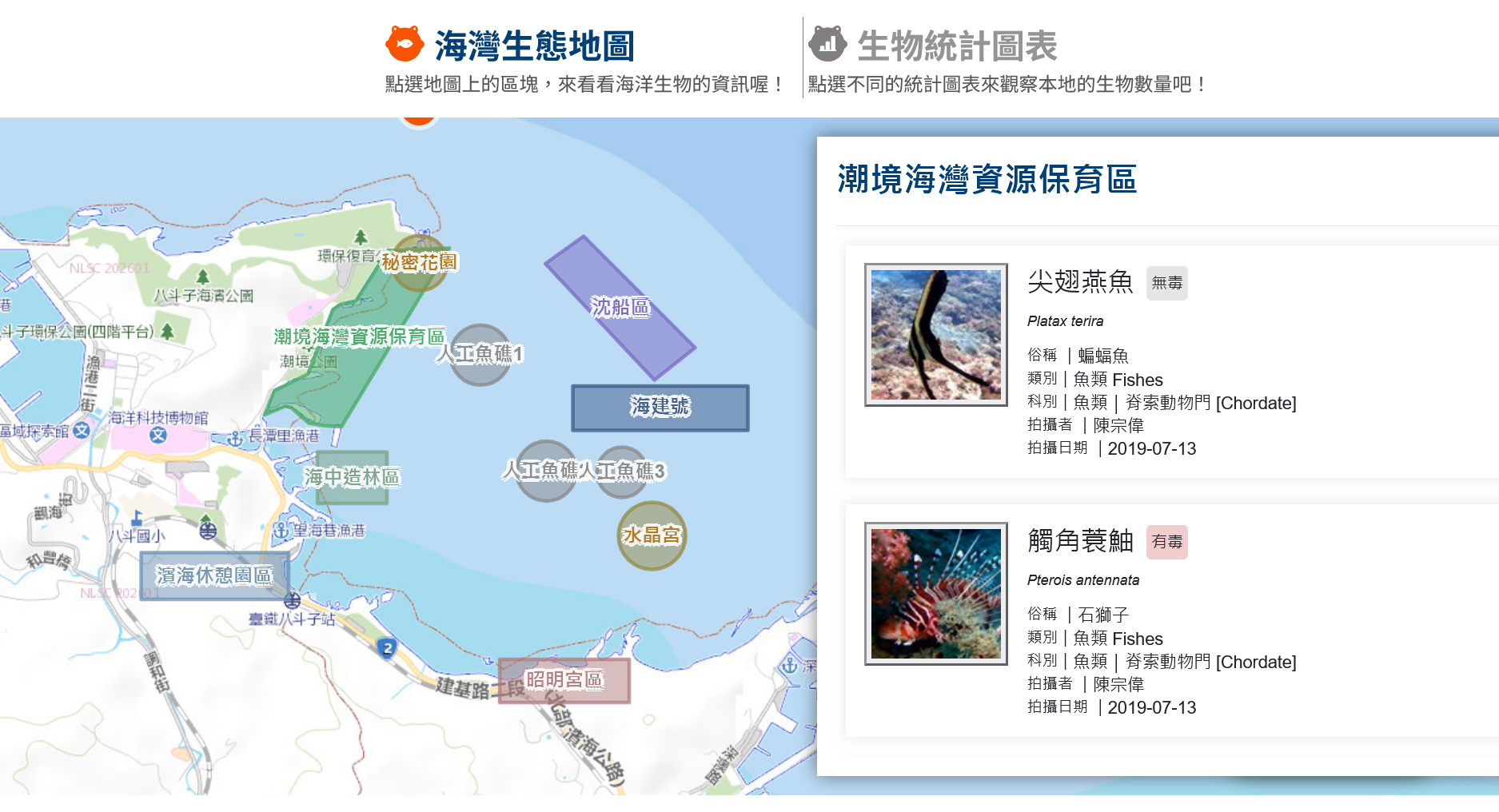 網站內處處可查詢到可愛的生物照片,十分適合親子一同探索,讓所有人都能共同觀察、共同守護這片海洋。
