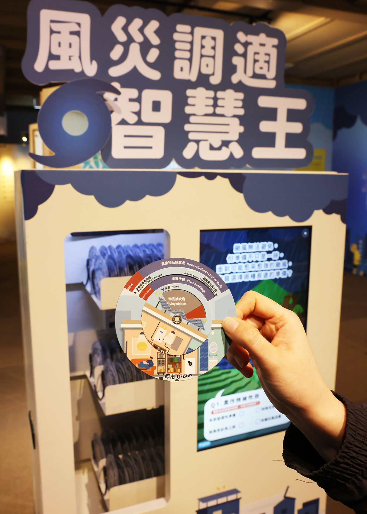 科工館所推出的「風災調適智慧王」,讓民眾能思考面對颱風短期與長期分別能做好那些準備,在日常生活中進行規劃,應對可能帶來的衝擊。