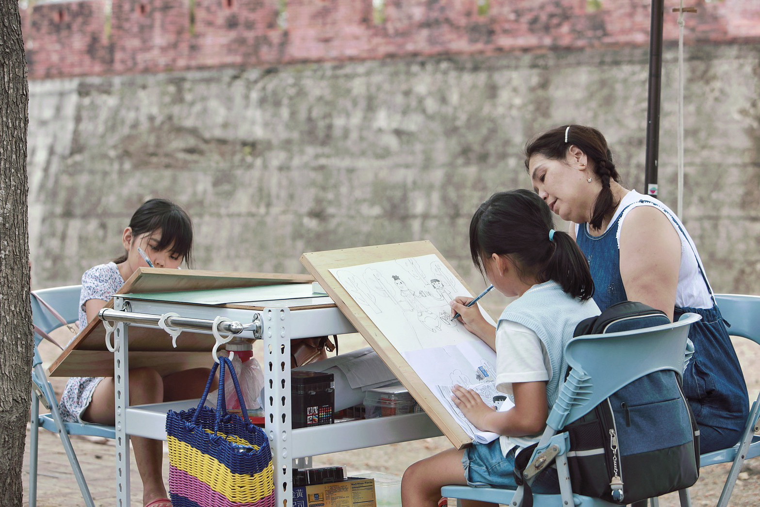 也有親子並肩作畫的溫馨畫面,現場呈現豐富多元的創作氛圍。