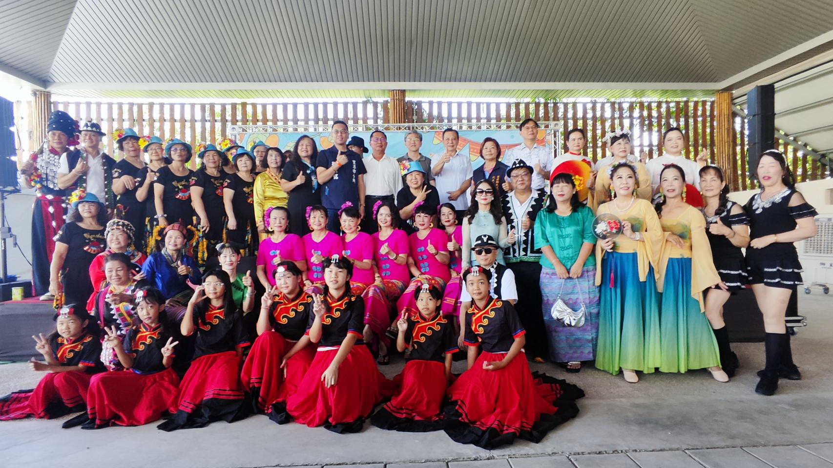 隨著鼓聲與歌聲,鮮豔的民族服飾隨舞步搖曳,呈現出跨縣市文化交流的成果,也象徵族群融合與文化延續的深厚意義。