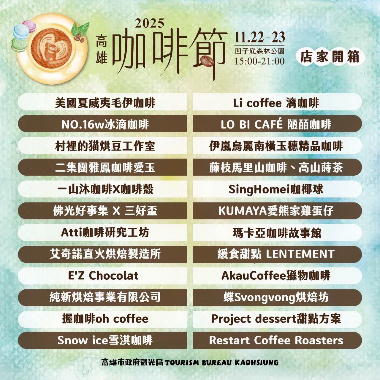 「2025高雄城市咖啡節」、「高雄冬季國際旅展」等,完美串聯城市文化、生活體驗與美食旅遊。