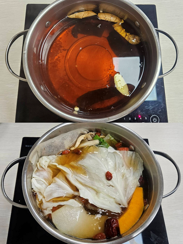 如大白菜、高麗菜、菇類,取代高熱量、高鈉、營養價值較低的加工火鍋料。