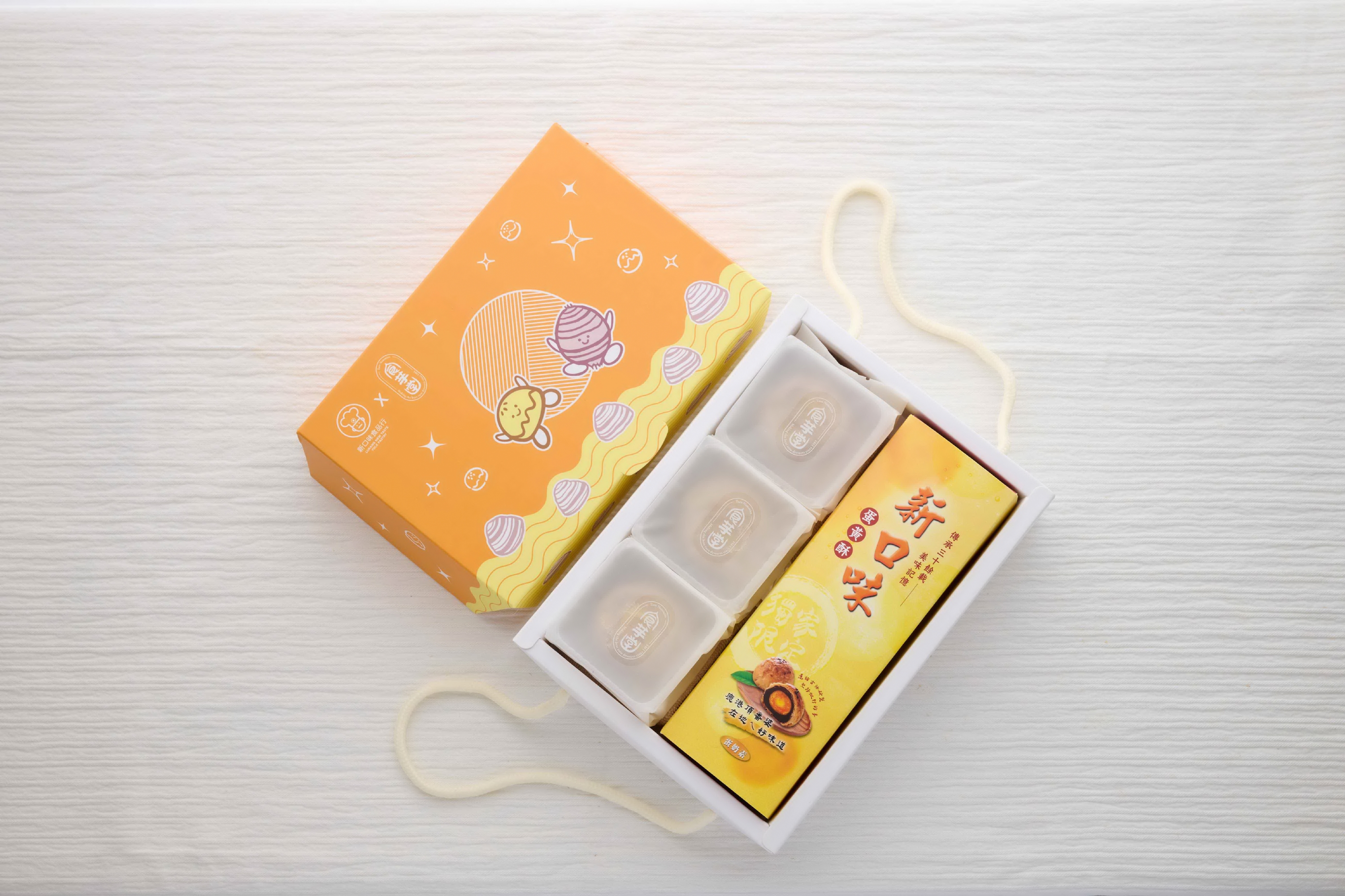 - 販售品項:新口味蛋黃酥文青款 (350元/6入)、蛋黃酥風味蝦餅魚酥條 (200元/罐)。