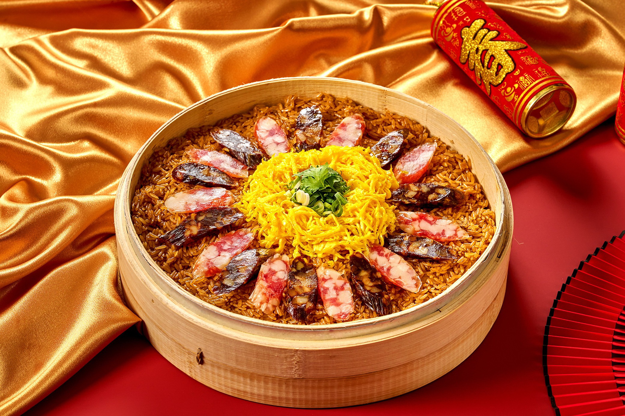 (「港式臘味糯米飯」臘腸的鮮甜與酒香融入米粒裡,美味不油膩,米糯不軟也不黏,是一道經典的港式家常年菜。圖/瀚寓酒店提供 )