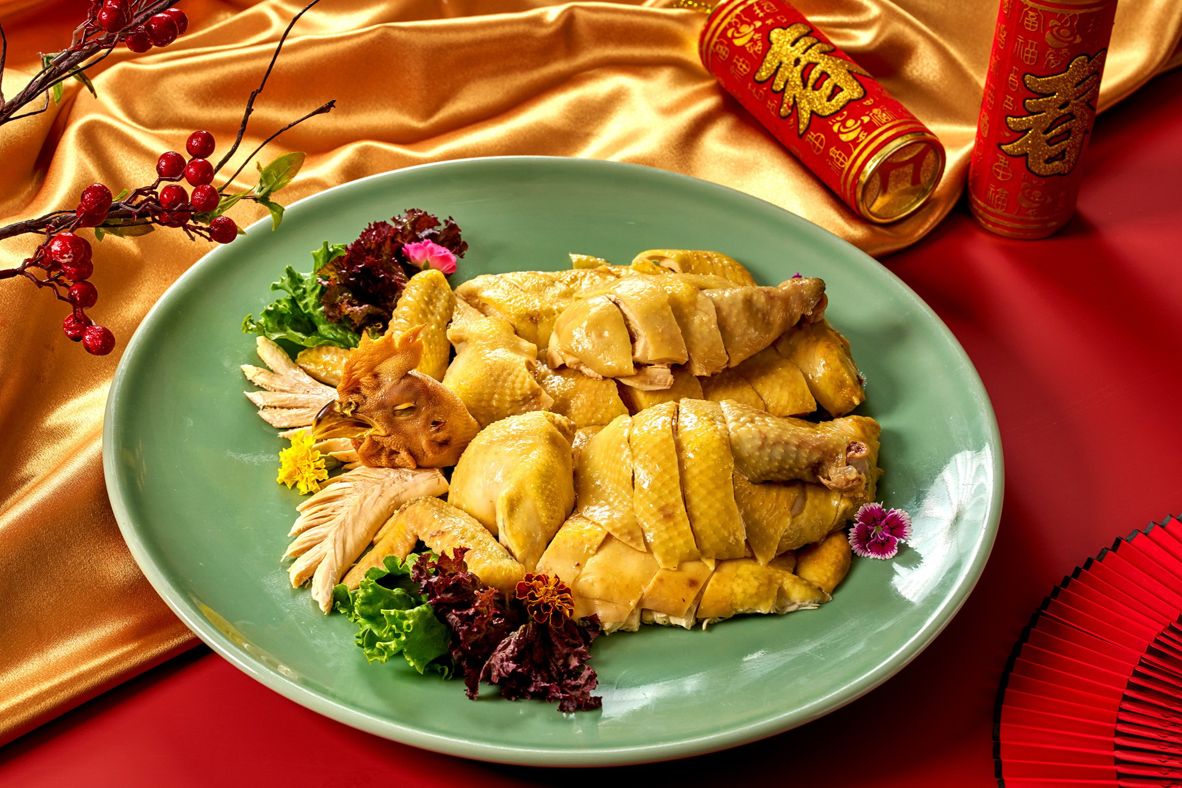 (「古早放山白切雞」以粵式手法精準控火,低溫慢煮至雞皮微凝,保留最純粹的鮮甜與油香,肉質嫩滑多汁。 圖/瀚寓酒店提供 )