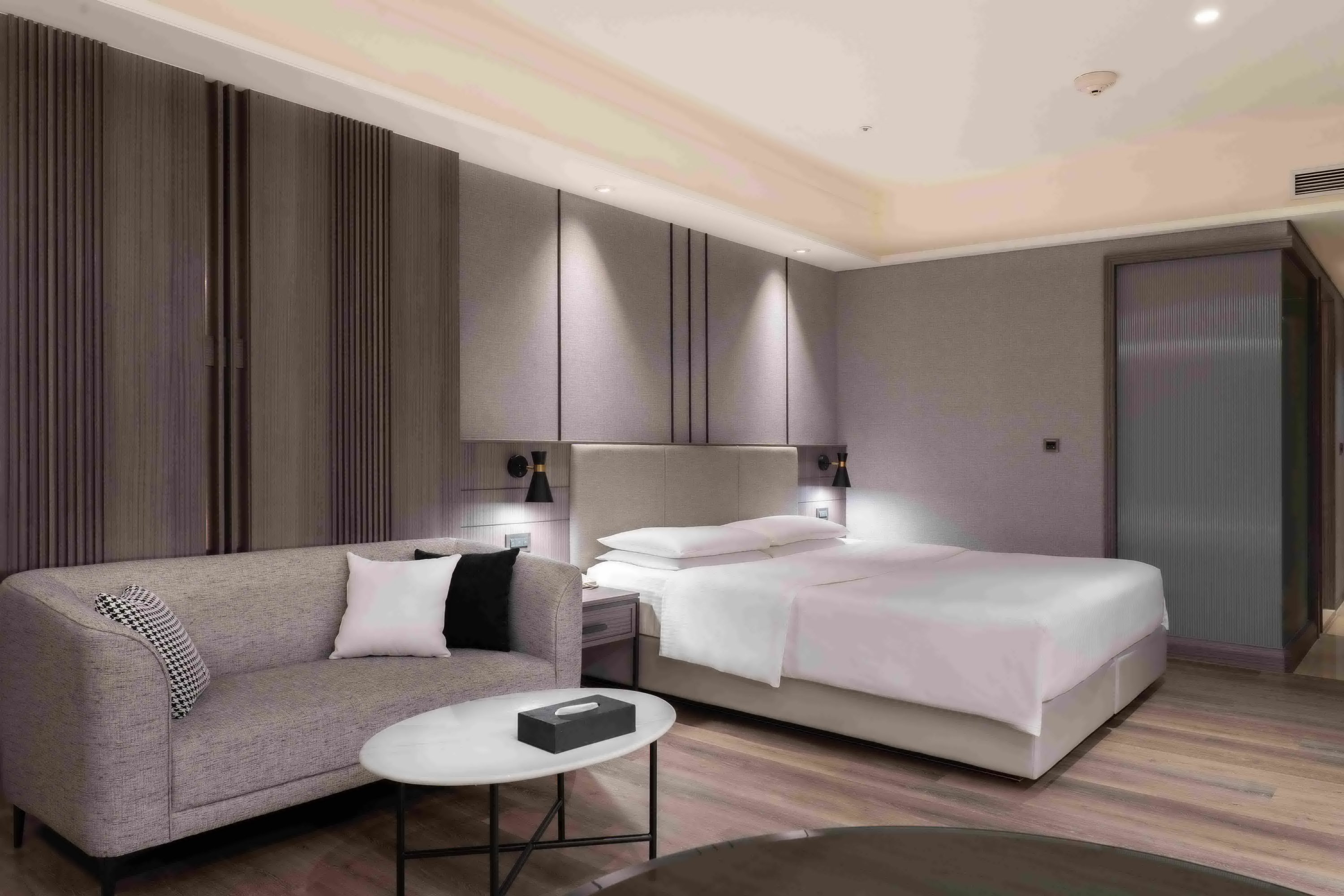 (【義大皇家酒店】皇家客房一大床氛圍簡潔柔和 圖/義大世界提供 )