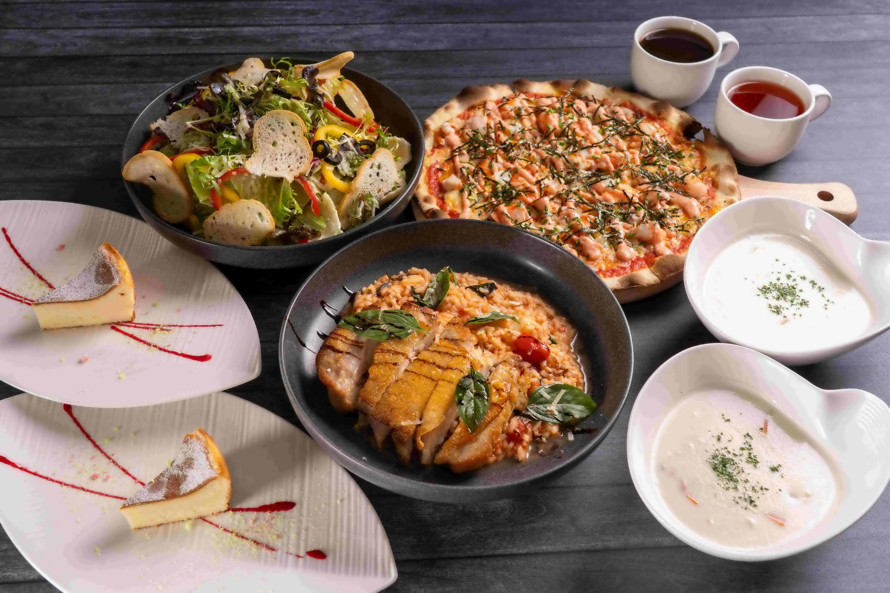 義式餐廳CASA FONTANA從前菜、主菜到濃湯共四道料理,並搭配甜點與飲料,讓賓客一次品嚐豐富的義式風味。