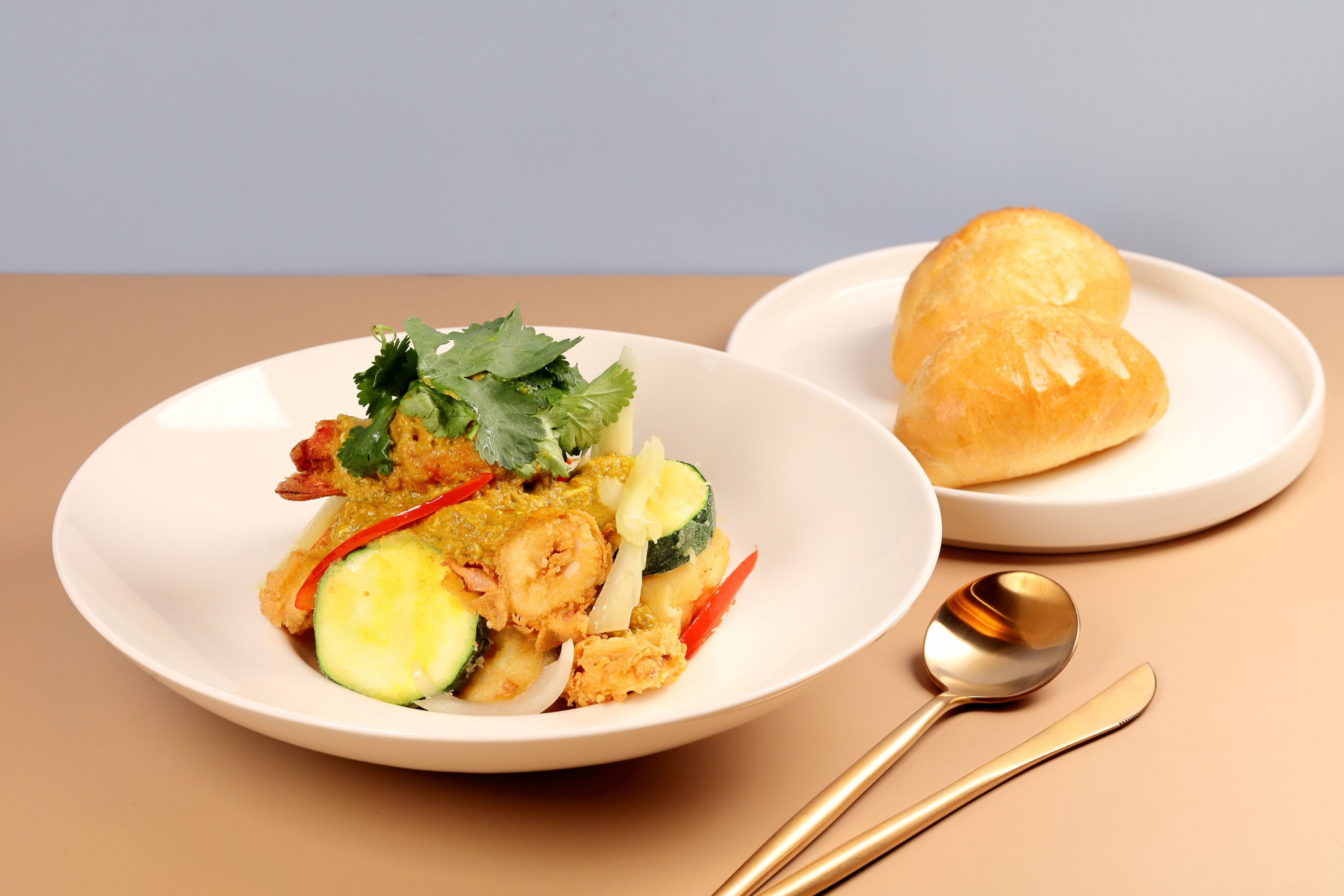 以香辣咖哩結合鮮甜海味與滑嫩蛋香,層次豐富。圖/萬豪酒店提供 )