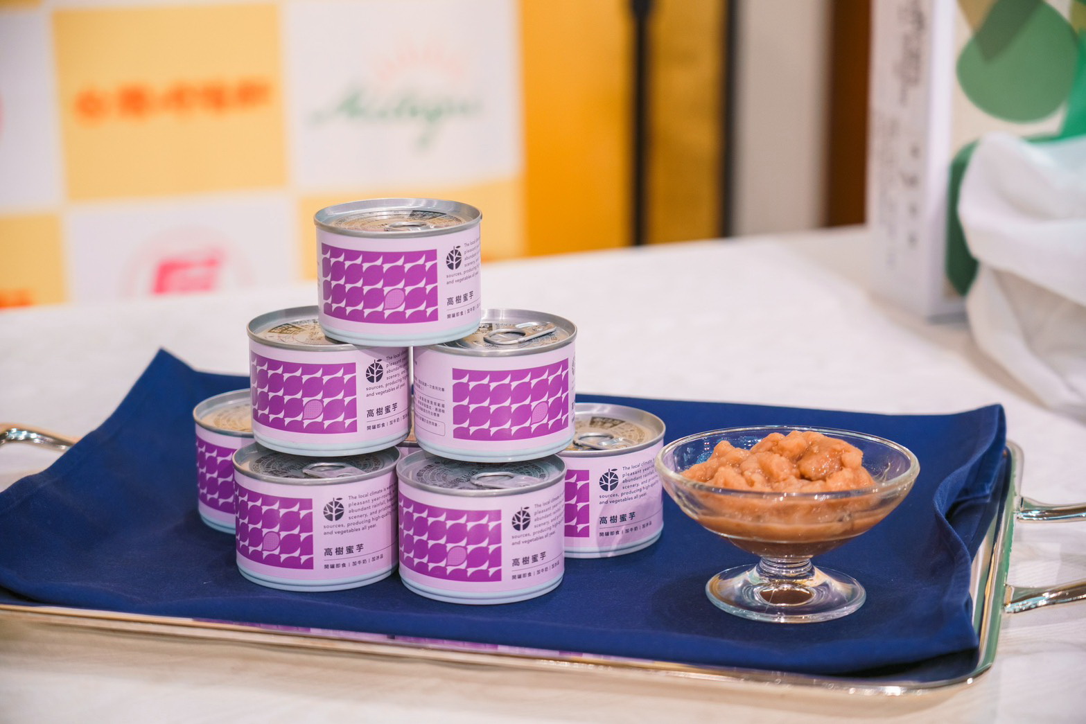 記者會上崎陽軒展示芋頭甜品,是採用來自高樹鄉農會生產的蜜芋,日本此類產品並不多,給消費者帶來新的味覺體驗。