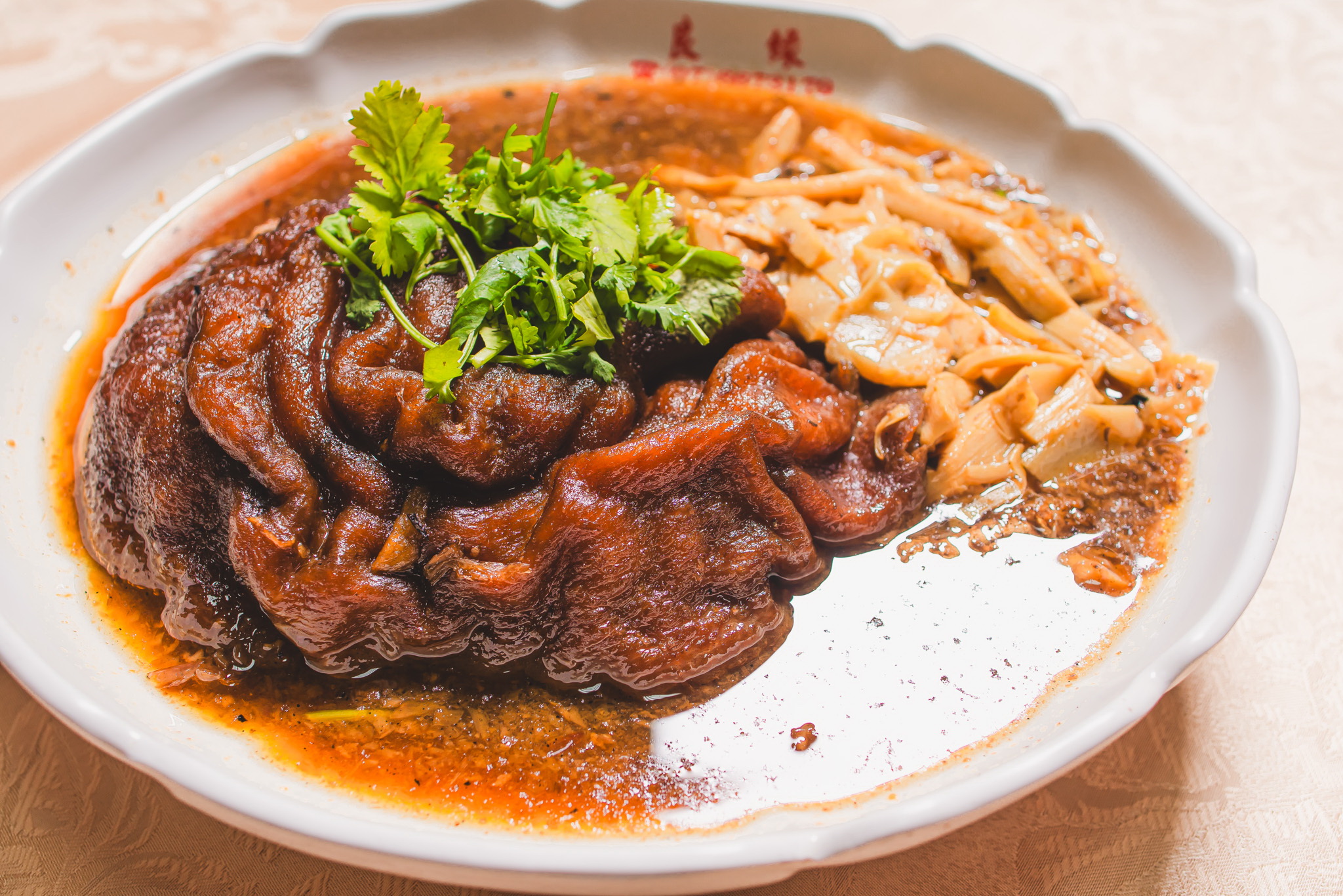 百灼海大蝦拼九孔、焗烤龍雪魚、養生燉烏骨雞、蒲燒鰻魚干貝米糕、唐朝一品元蹄等共10道功夫手路菜。
