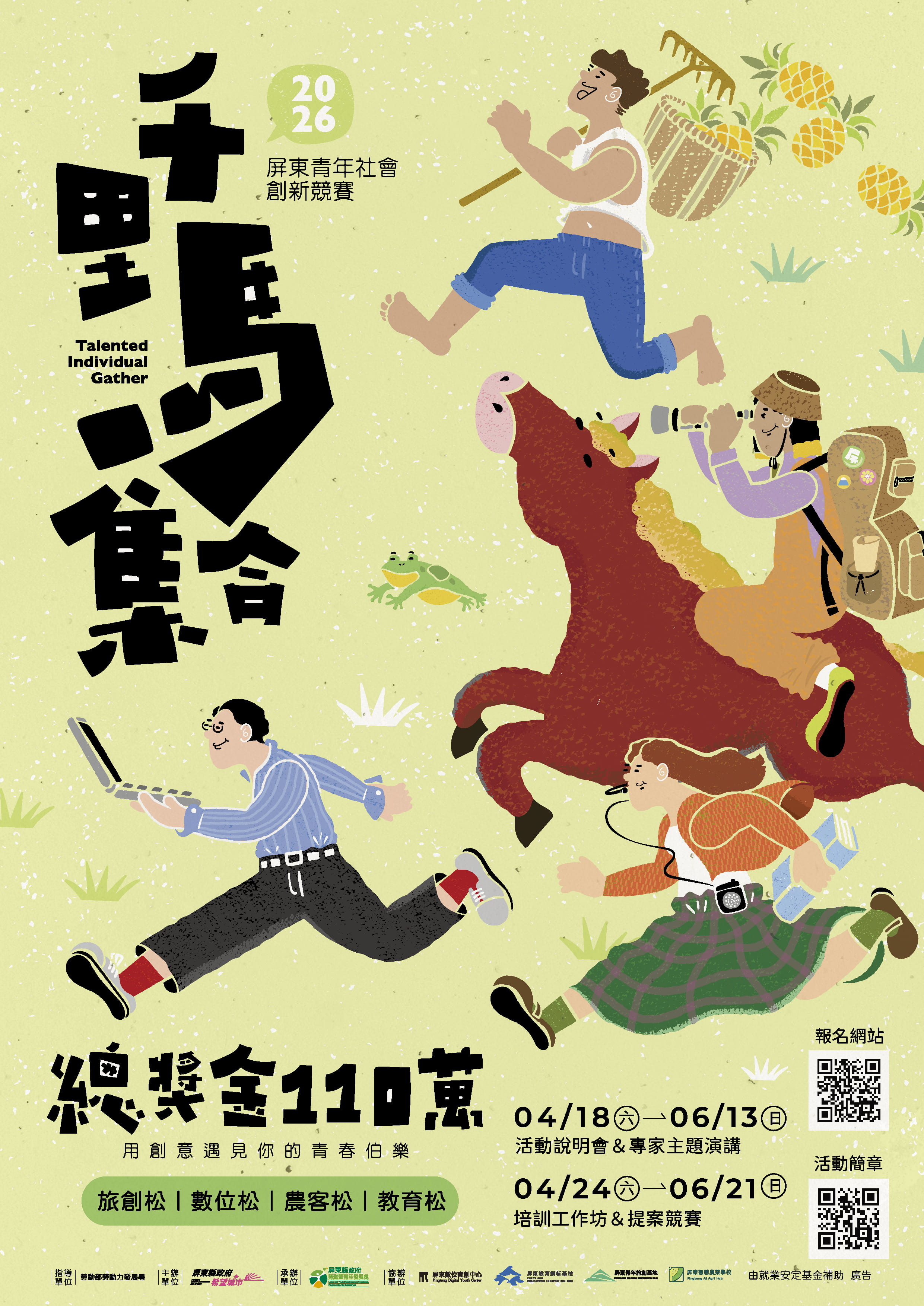 屏東縣政府持續推動青年返鄉與地方創生,今年再度推出年度指標性競賽「千里馬集合!2026屏東青年社會創新競賽」。