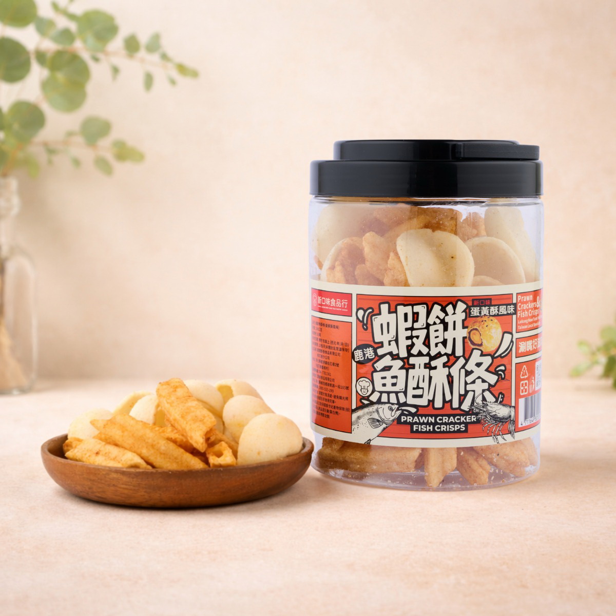 ( 超涮嘴的蛋黃酥風味蝦餅魚酥條(200元/罐) 圖/新口味食品行提供 )
