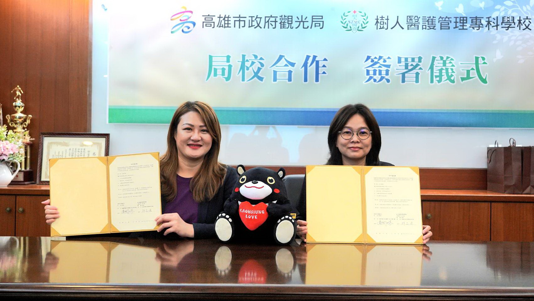 ( 觀光局長高閔琳與樹人醫護專科學校林品瑄校長簽署合作備忘錄 圖/高雄市觀光局提供 )