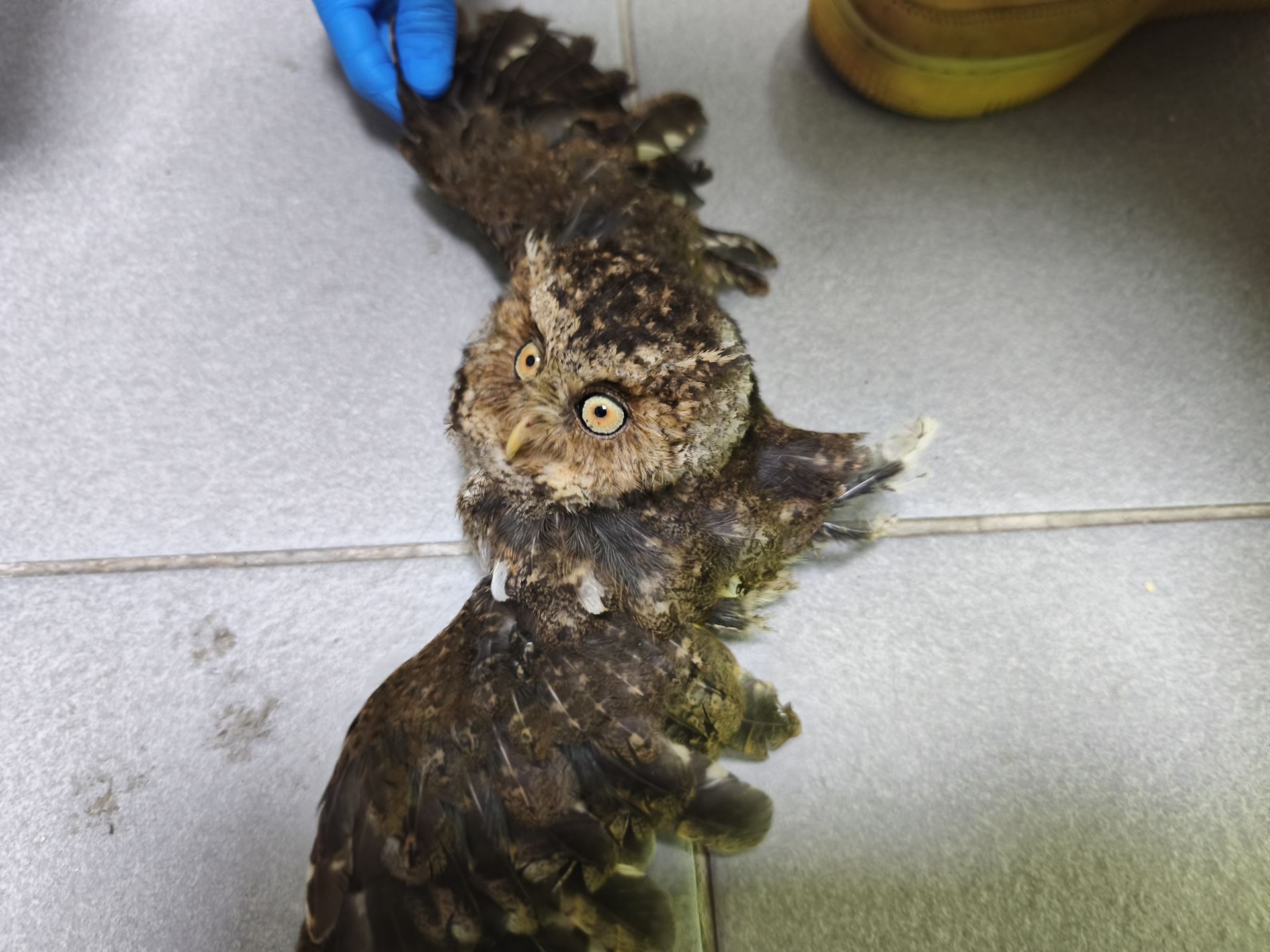 動保處提醒,這次領角鴞誤闖民宅,可能是因夜間覓食方向迷失,或受民宅燈光吸引所致。