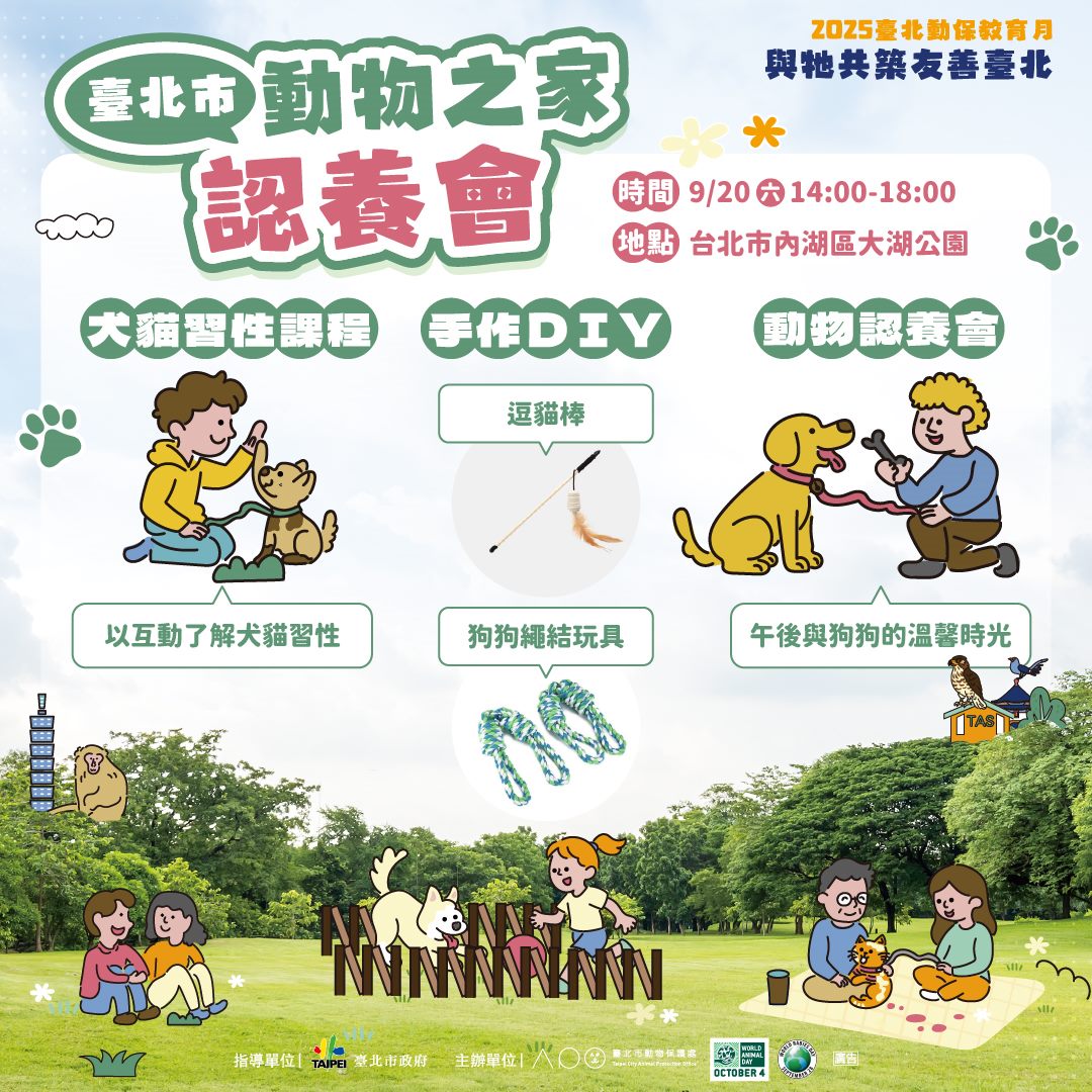 臺北市動物保護處自 9 月 7 日起正式啟動 「2025 臺北動保教育月」系列活動,精心規劃多場結合教育與趣味的毛孩盛會。