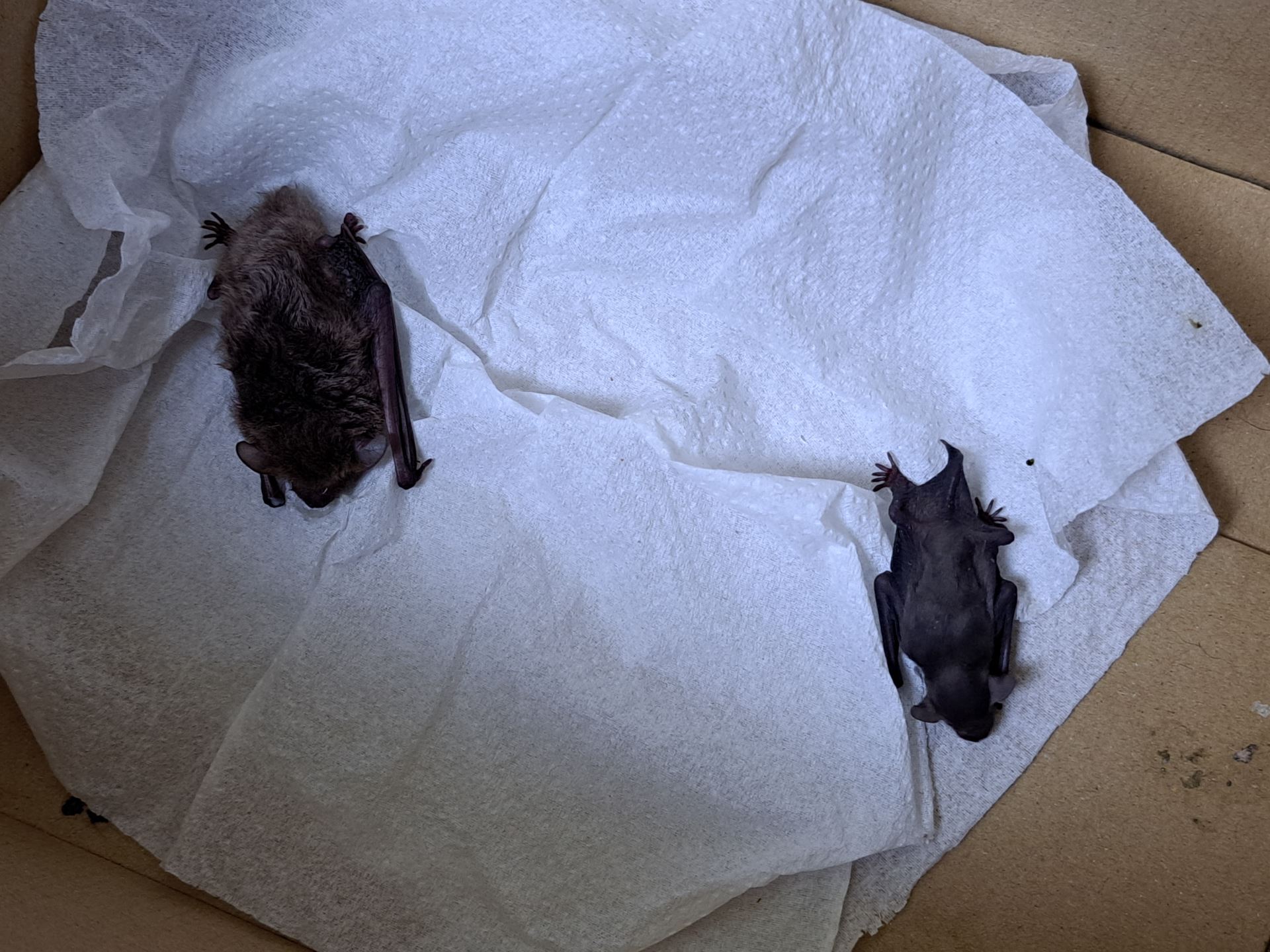沒想到在動保人員到場後才發現,這並非一隻小蝙蝠,而是一對緊緊相依的「蝙蝠母子」。