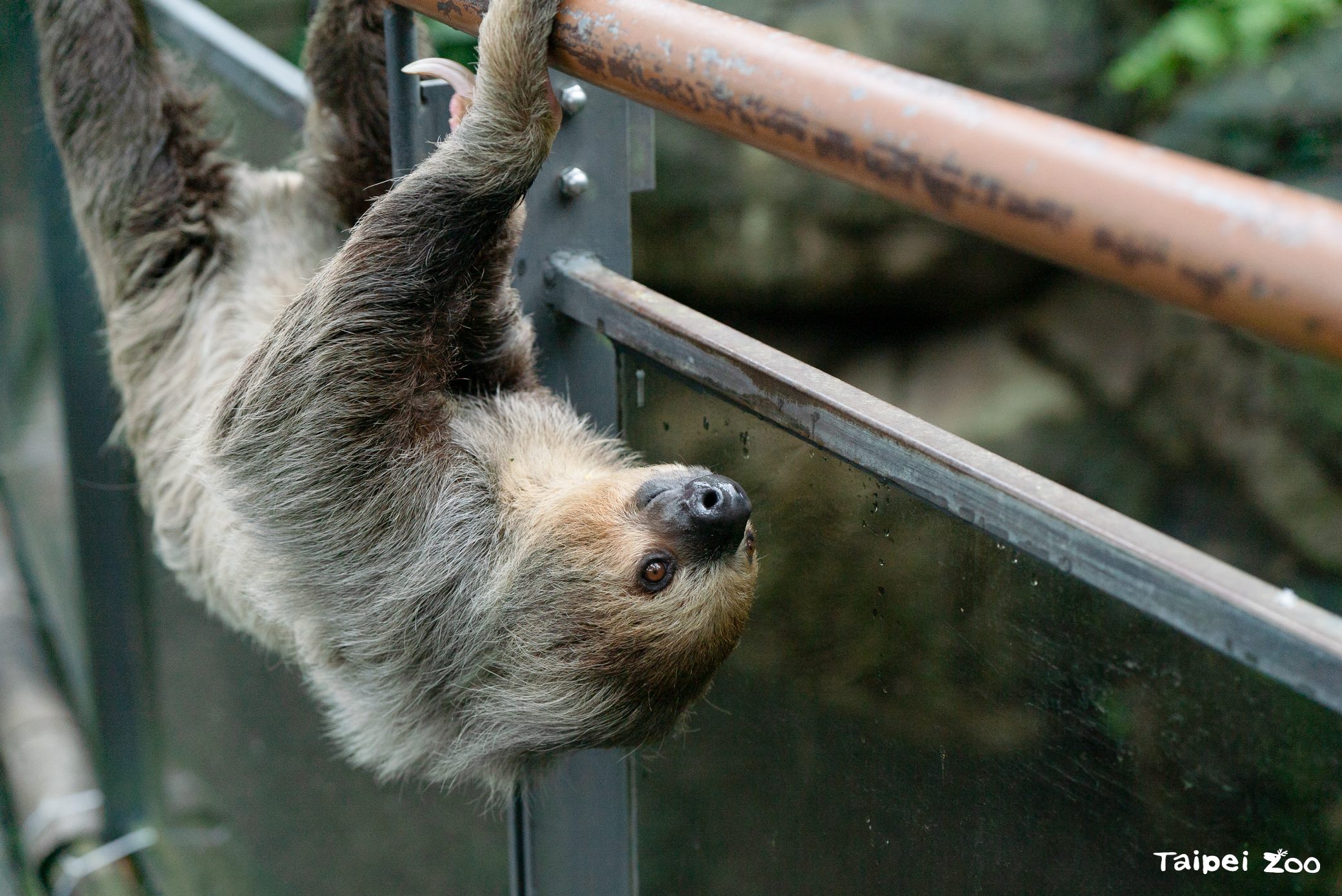 樹枝間,二趾樹獺靈活地攀爬移動,甚至沿著館內結構一路向上,挑戰穹頂高度,讓人忍不住屏息觀看。