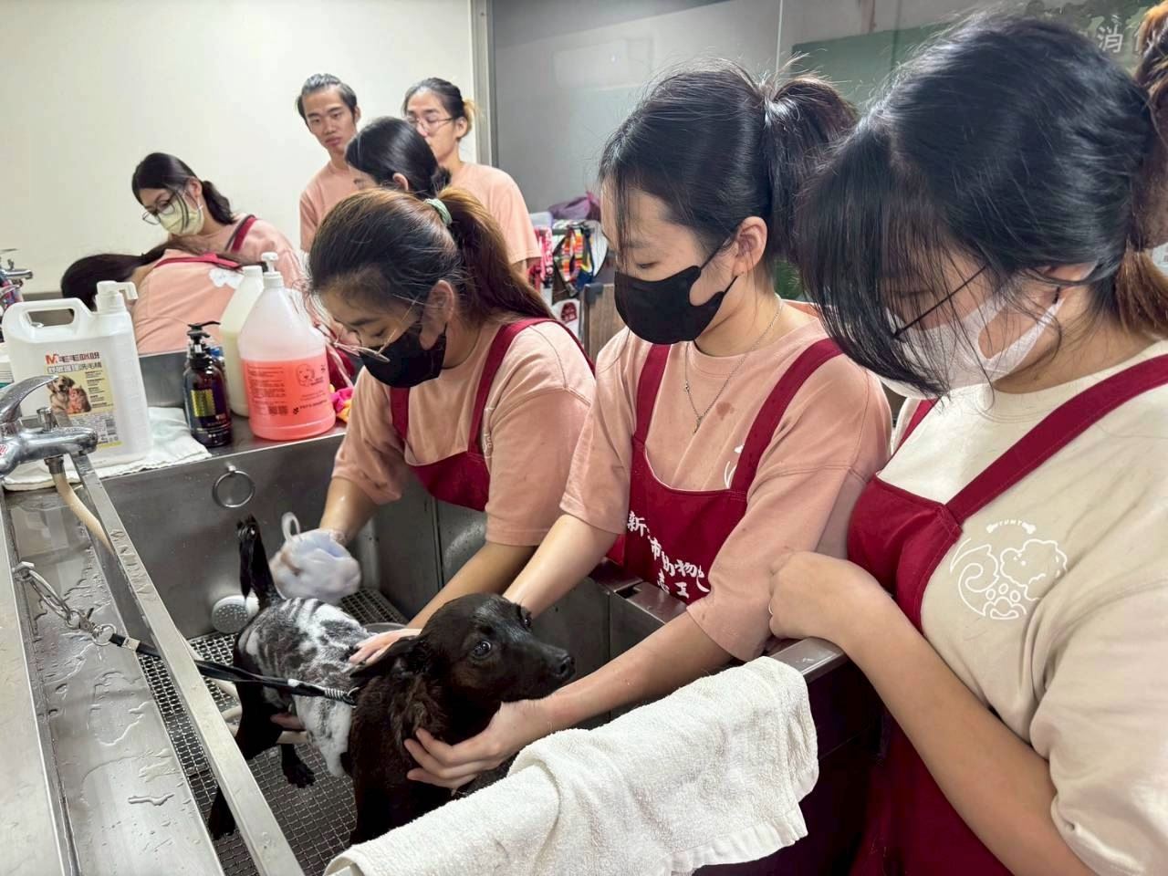 過程中,學生們以耐心安撫毛寶貝情緒,讓牠們逐步放鬆、建立信任。