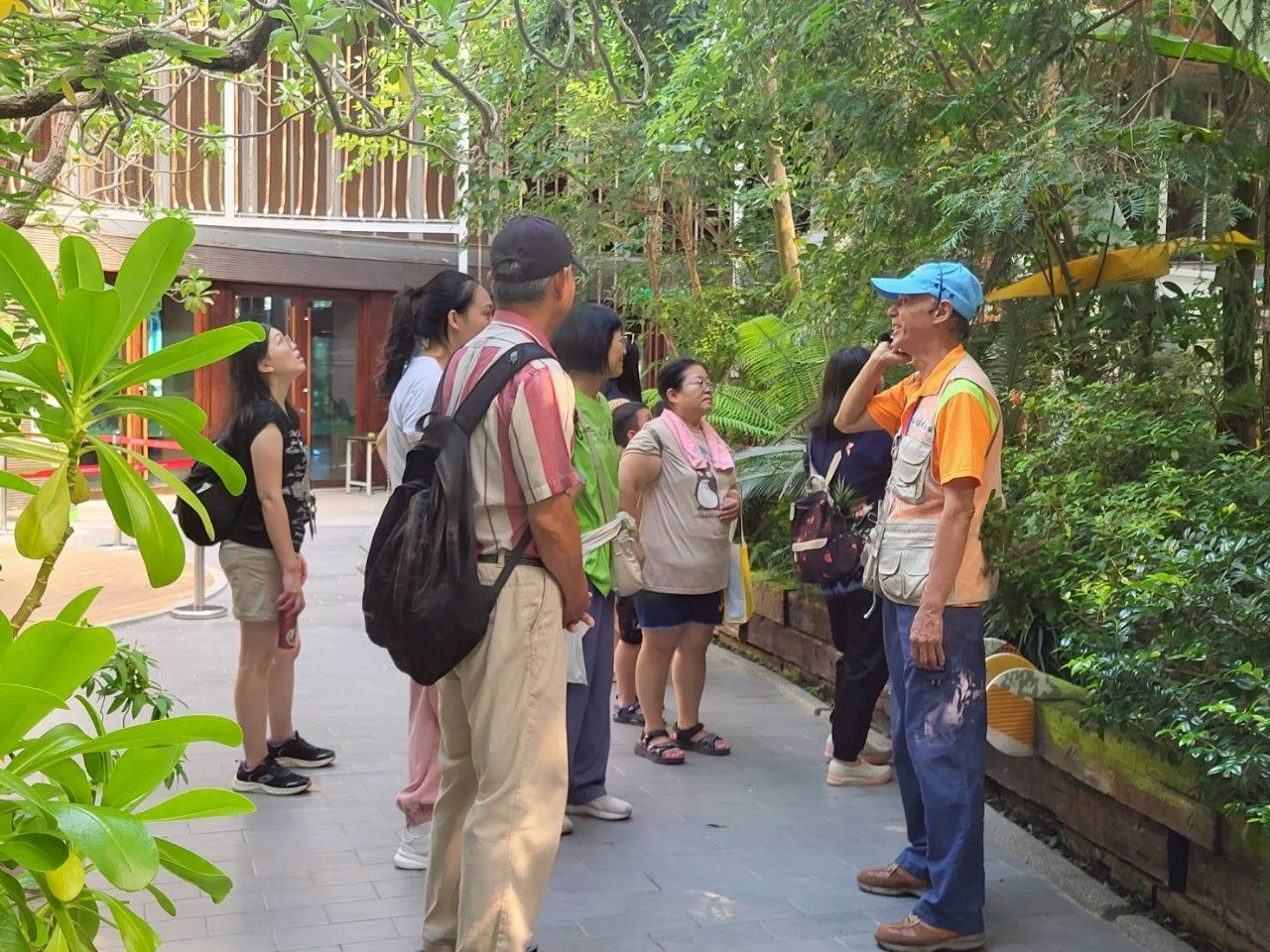 園區志工以生動有趣的比喻講解植物知識,從原住民族文化中的傳統植物應用。