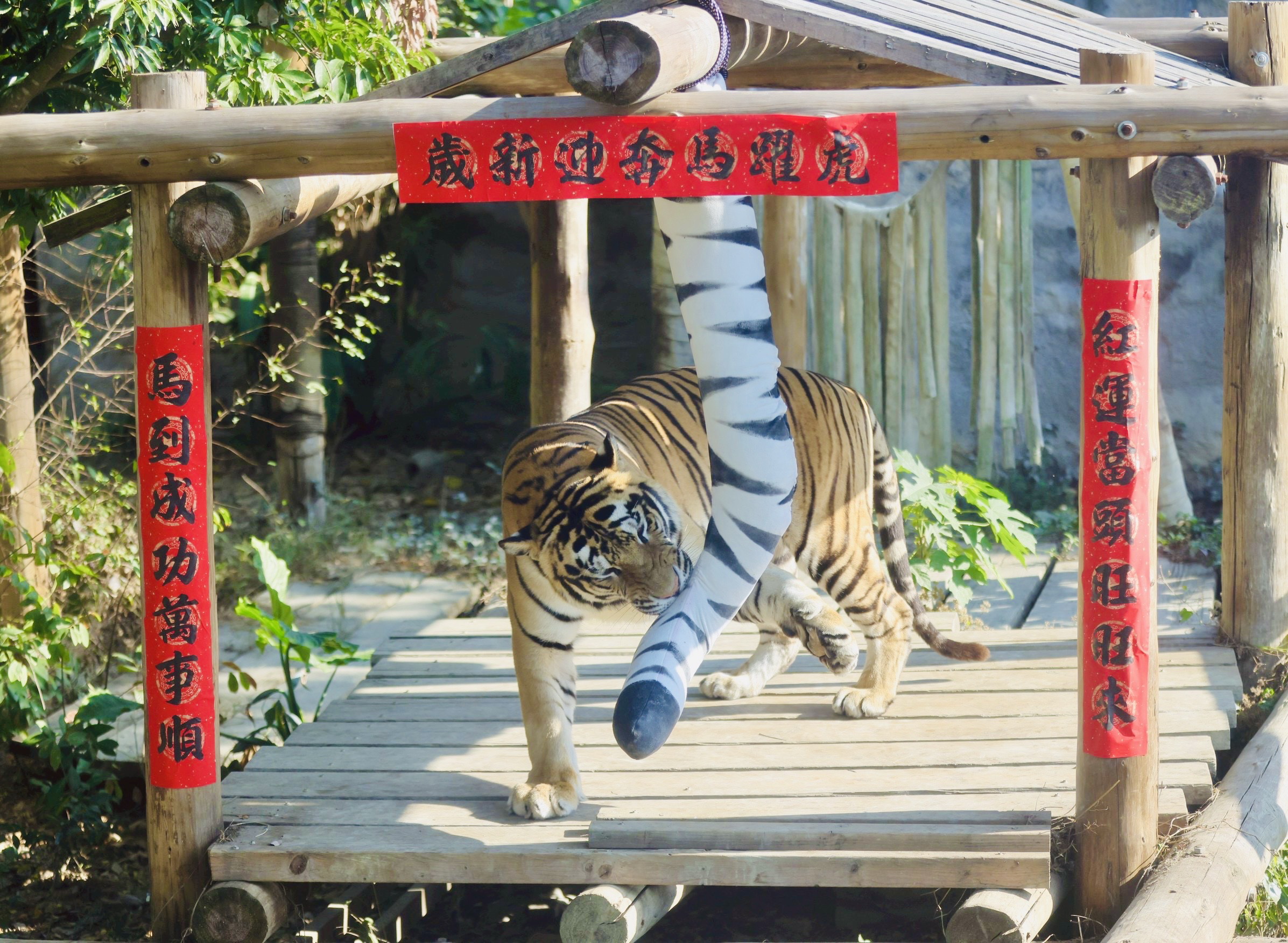 園方也在狐獴展場及孟加拉虎展場張貼春聯。