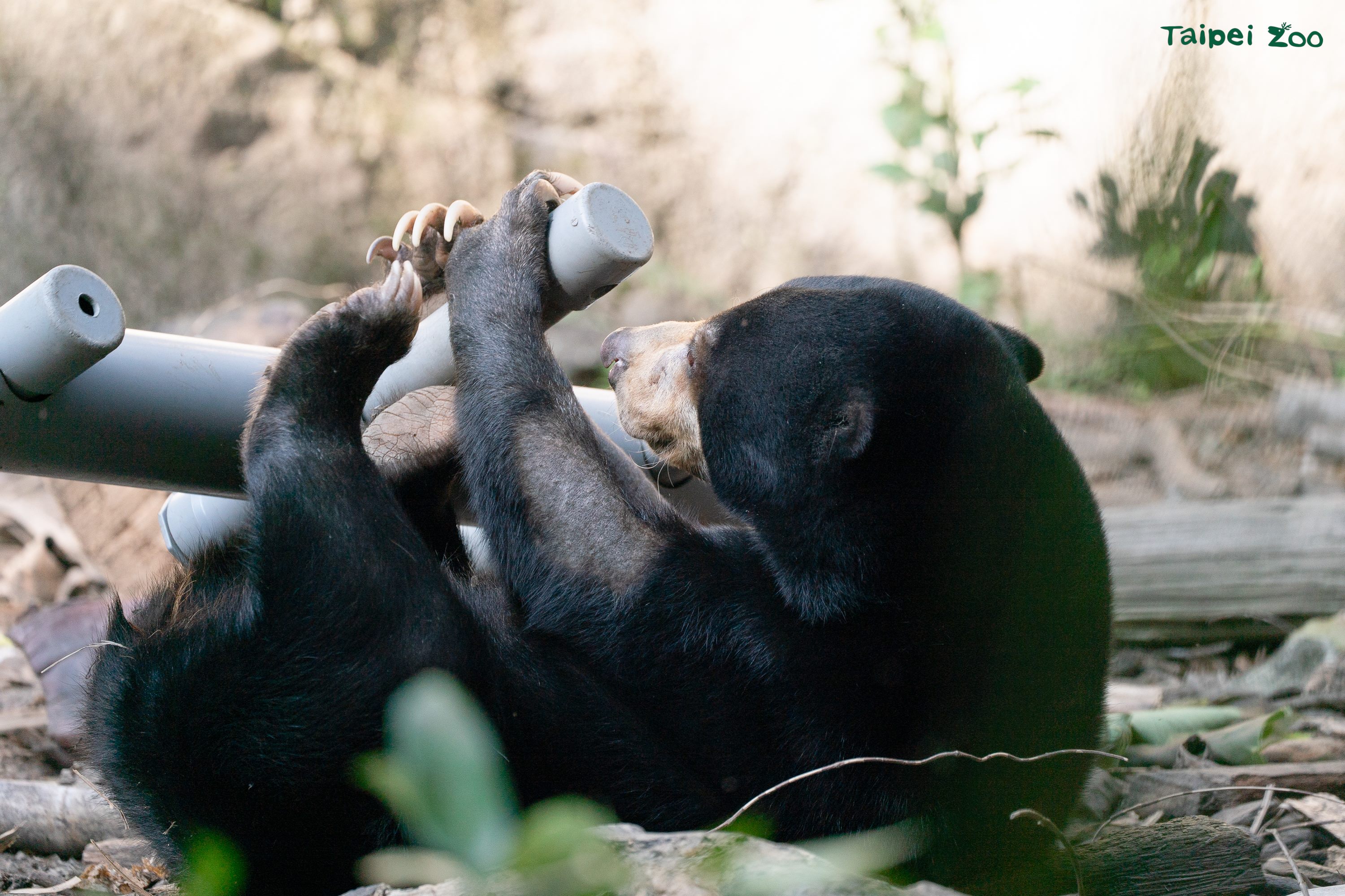 臺北市立動物園熱帶雨林區的馬來熊姊弟──「小熊妹」與「熊霸」。