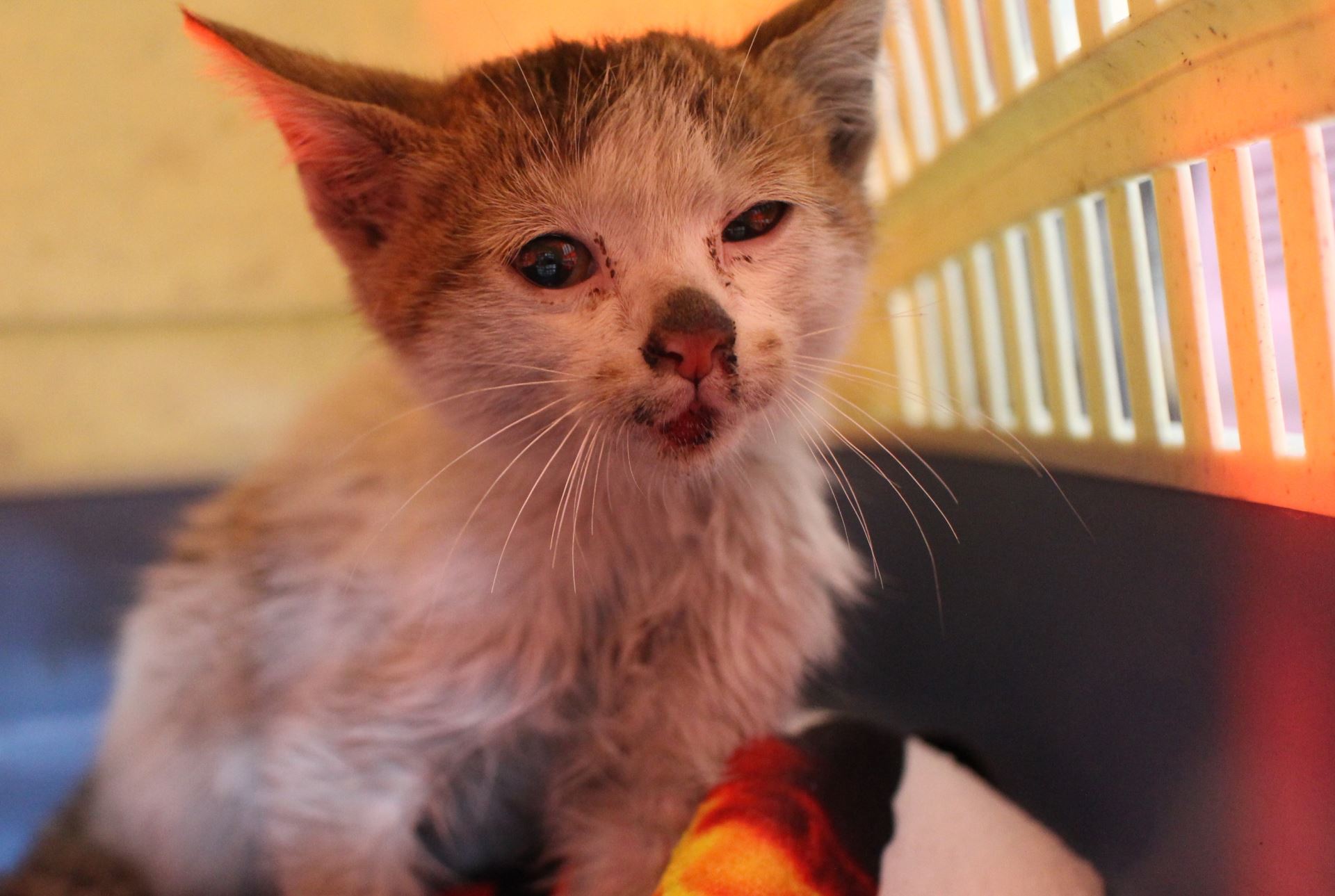 所幸這隻小貓在受傷後機警躲進地下室小房間,避免進一步傷害。