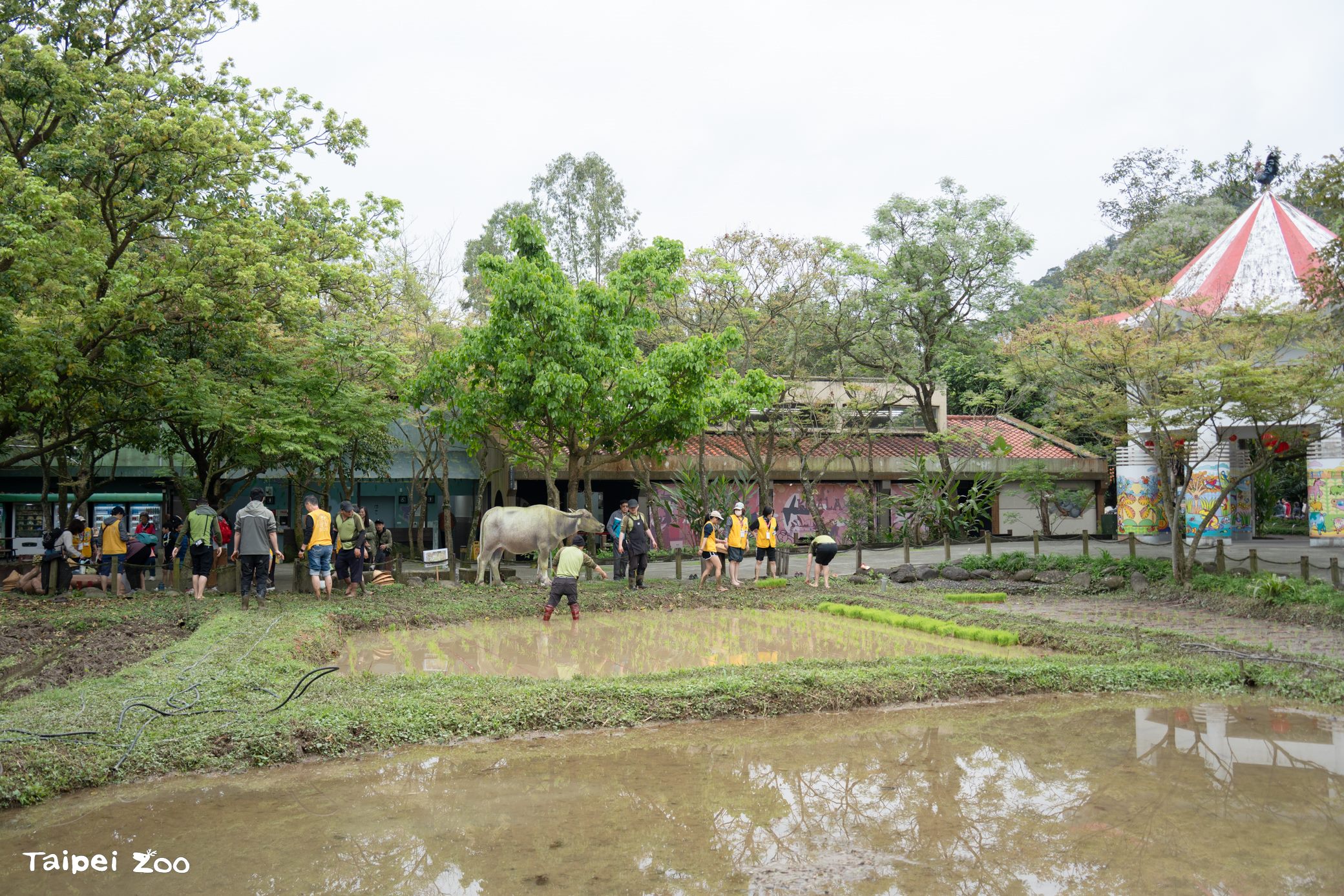 動物園的水田早已完成 蓄水與翻土準備,只等待小小農夫們一起下田插秧。