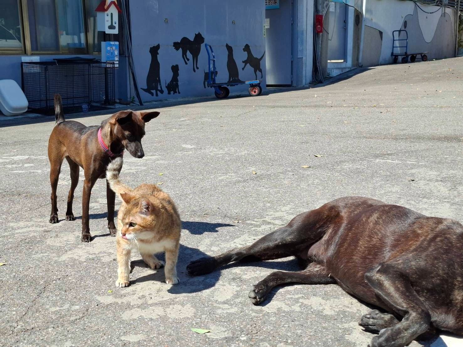 與人互動時也更加放鬆,甚至連所內的狗狗都對牠特別溫柔,畫面既可愛又讓人覺得暖心。