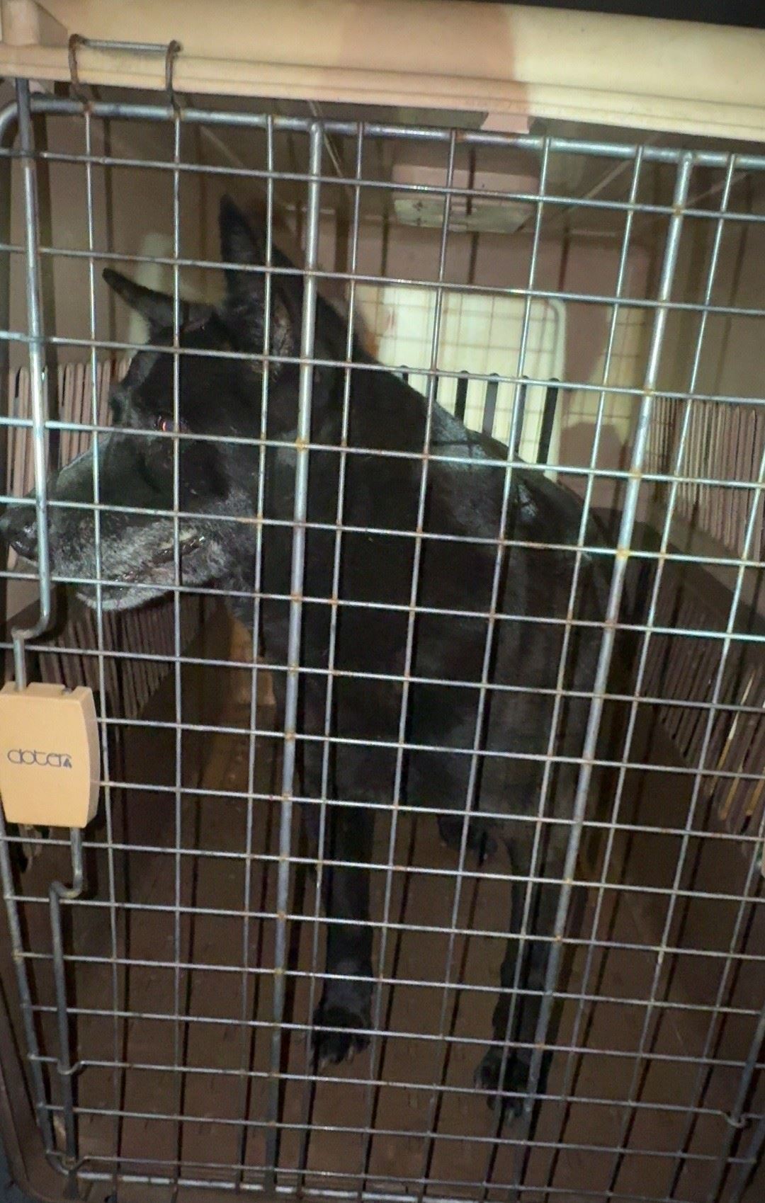 經獸醫師評估,這隻黑色浪犬並未植入晶片,目前已完成血液寄生蟲快篩、糞便檢查及皮膚狀況評估,也同步接受皮膚病與寄生蟲相關治療。