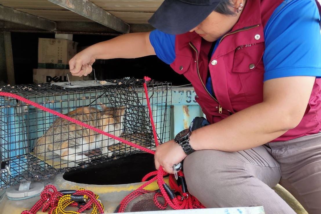 現場人員隨即靈活調整方式,利用加長型伸縮工具輔助按壓踏板,這才成功完成關籠作業,順利將小貓平安帶離現場。