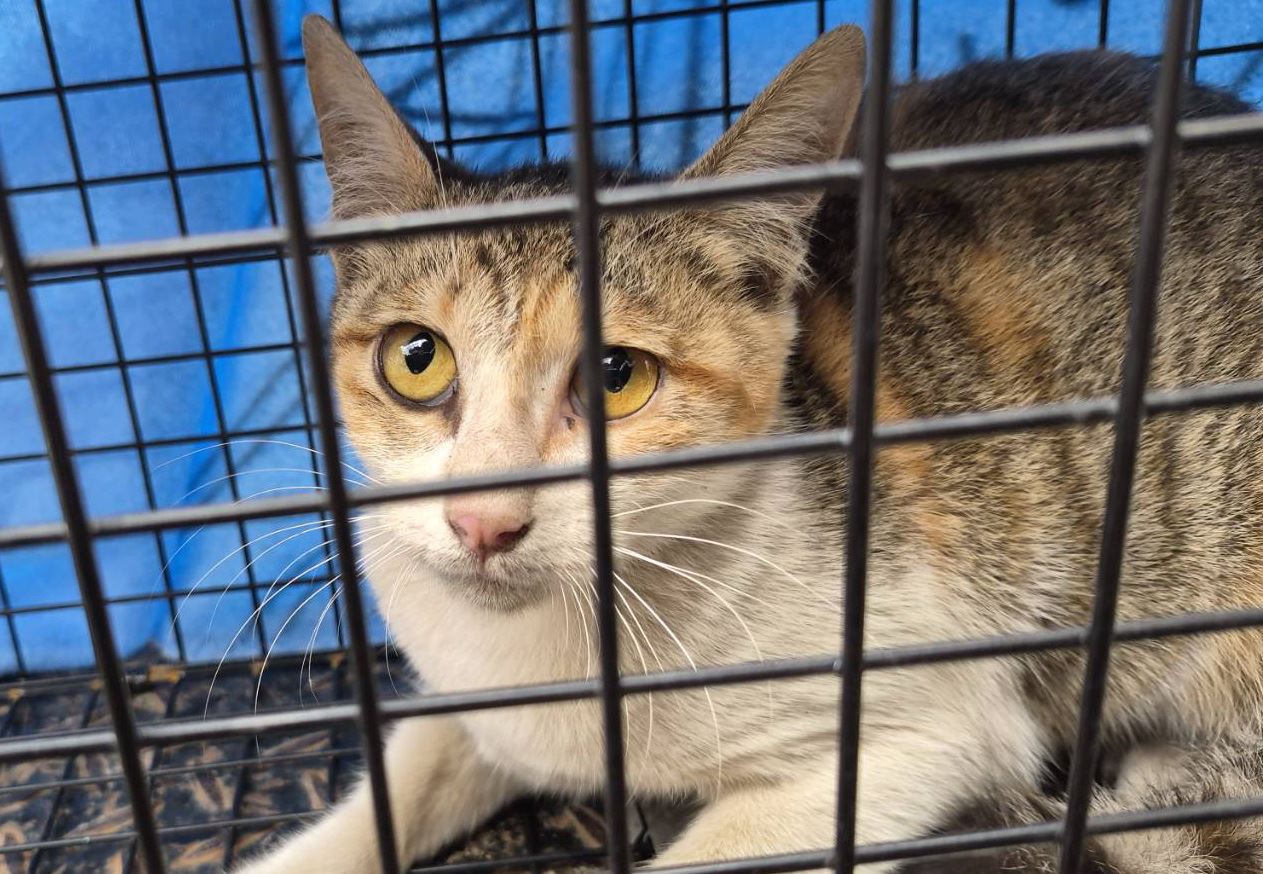 經獸醫師初步評估,這隻小三花雖然受到不小驚嚇,但整體狀況尚屬穩定,僅出現精神緊繃與輕微脫水情形,並未有明顯外傷。